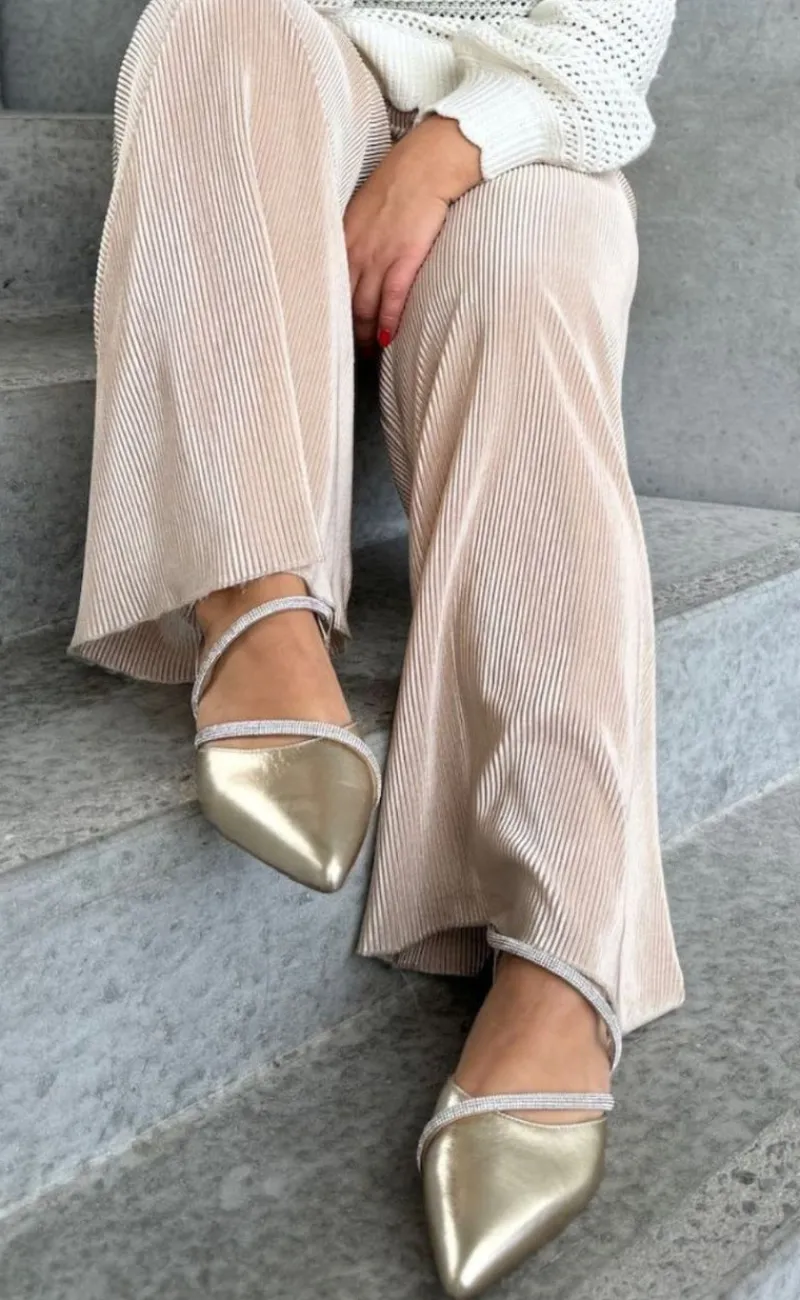 Femini stylen kommer i en spinkel model med to glimmer stropper henover foden.