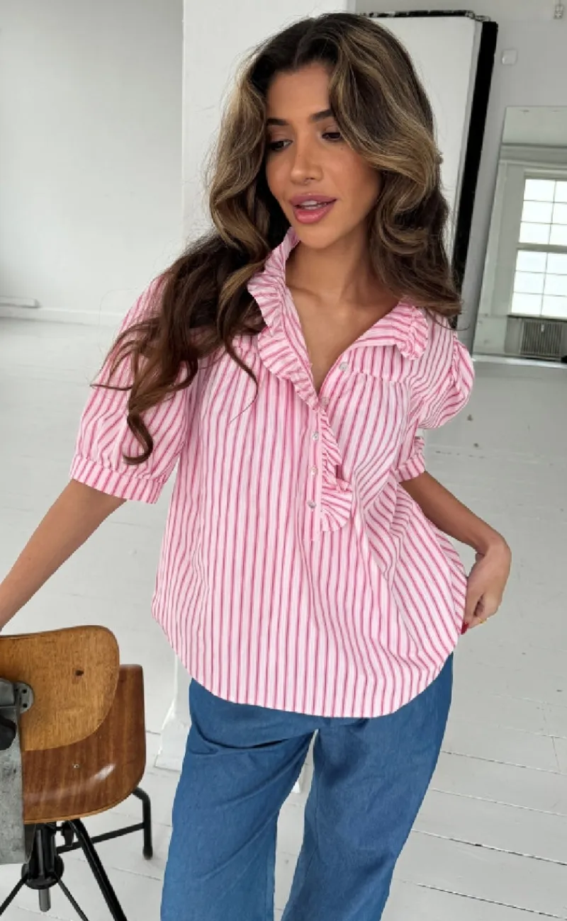 Smuk skjortebluse fra Continue i lyserøde nuancer.