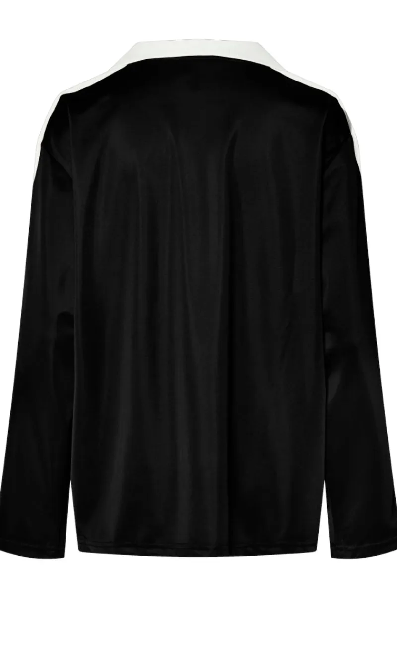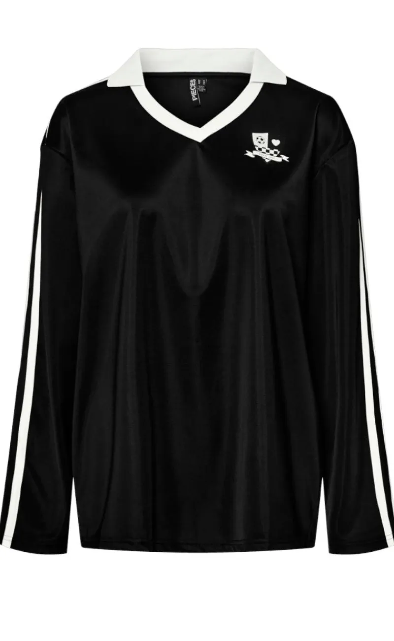 Langærmet bluse fra Pieces i sort, med flotte hvide detaljer.