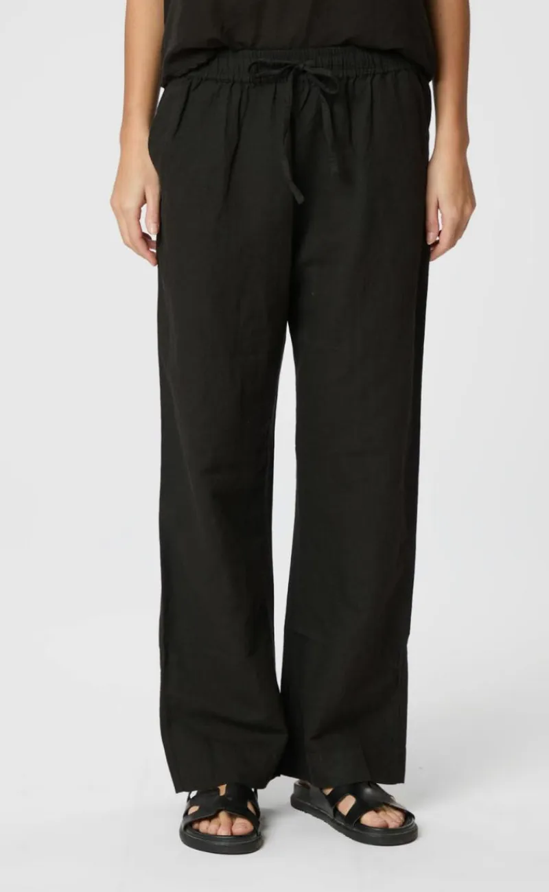 Disse bukser har en elastik talje og vide ben.