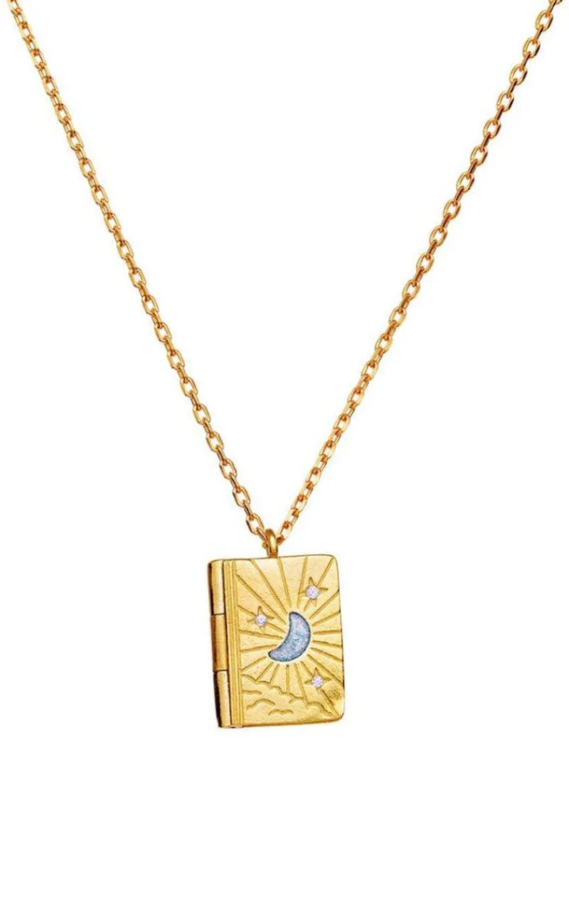 Halskæden har en lille bog som vedhæng med ordene “Little big dream” indgraveret på bagsiden.