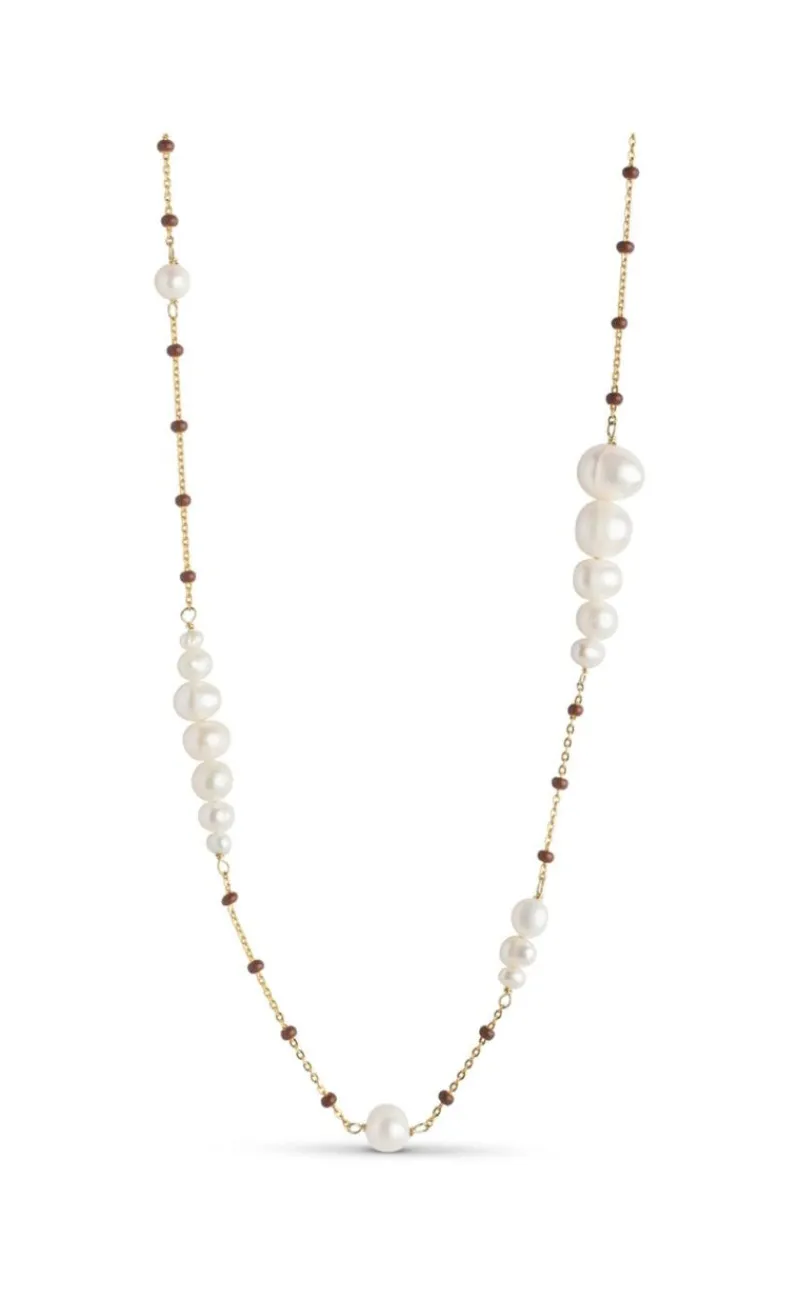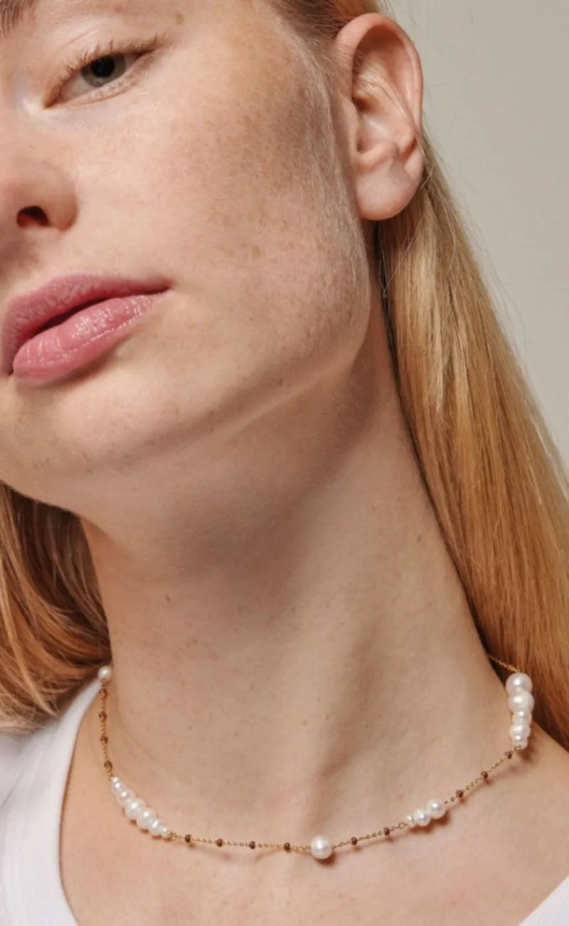 Flot halskæde fra Enamel Copenhagen i guld med perler samt brune sten.
