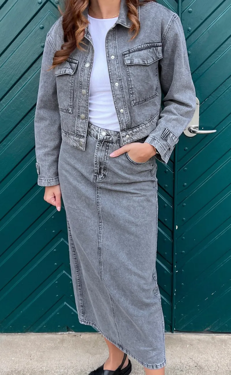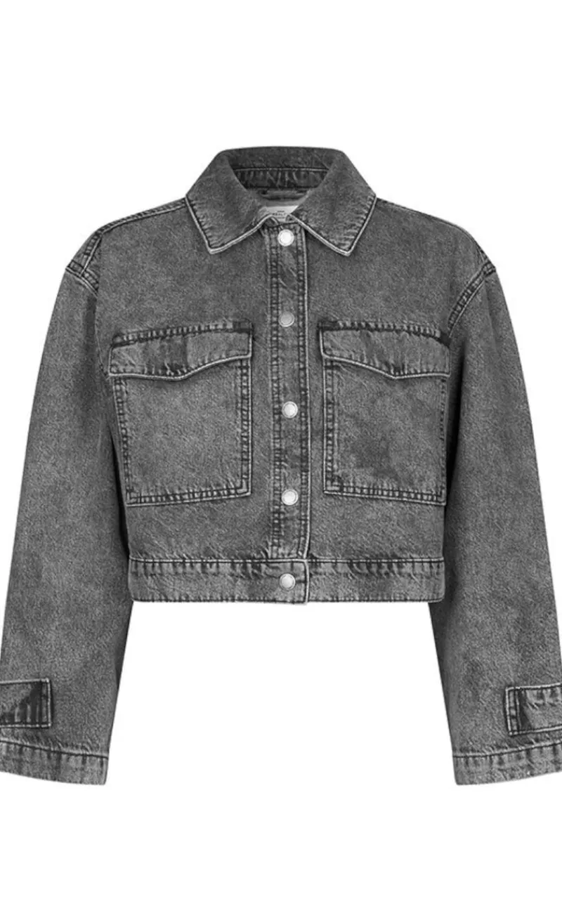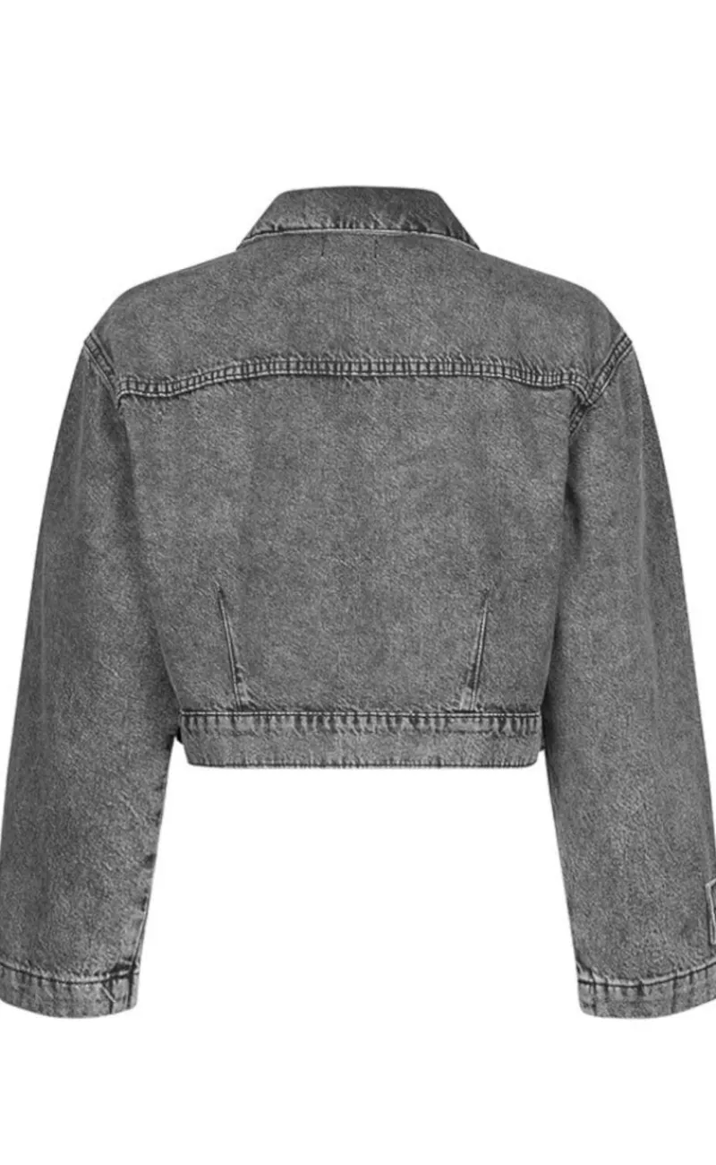 Fed denimjakke fra Gobal Funk, i en forvasket grå farve.