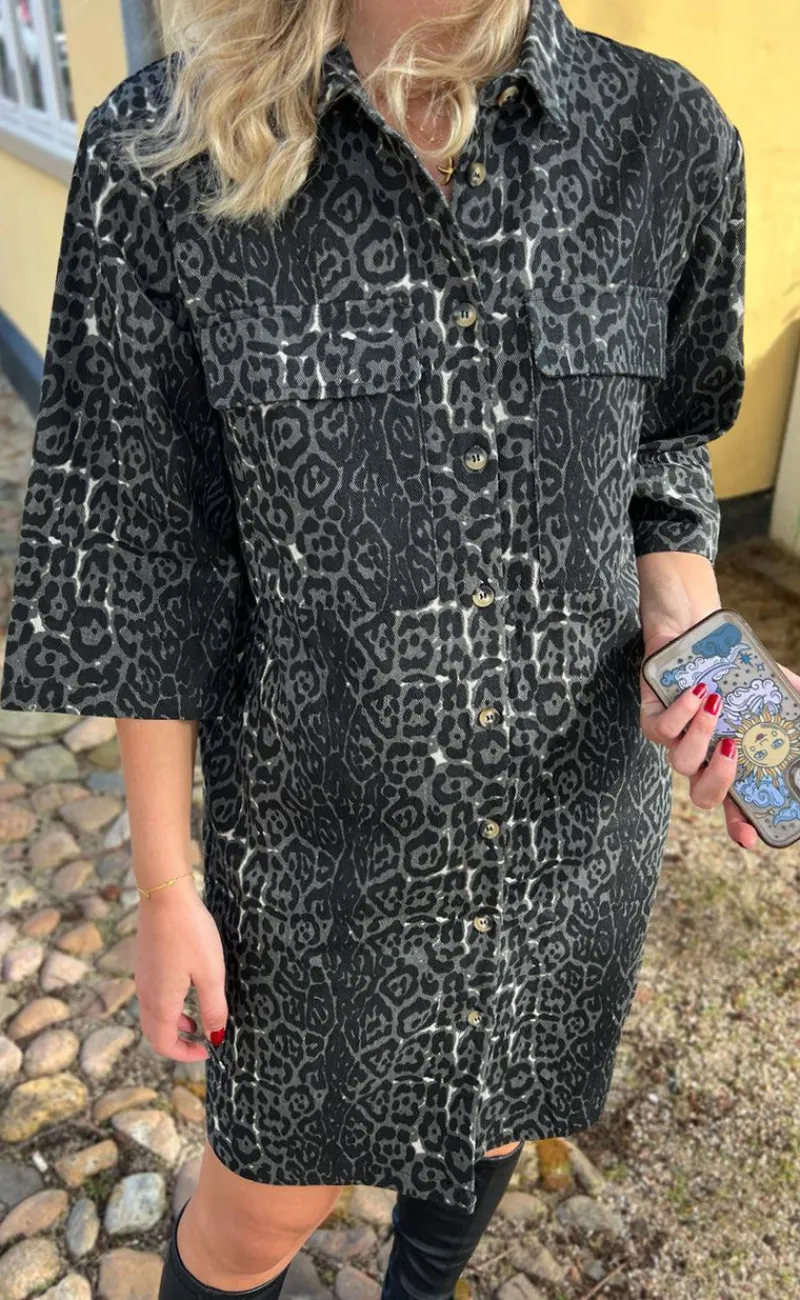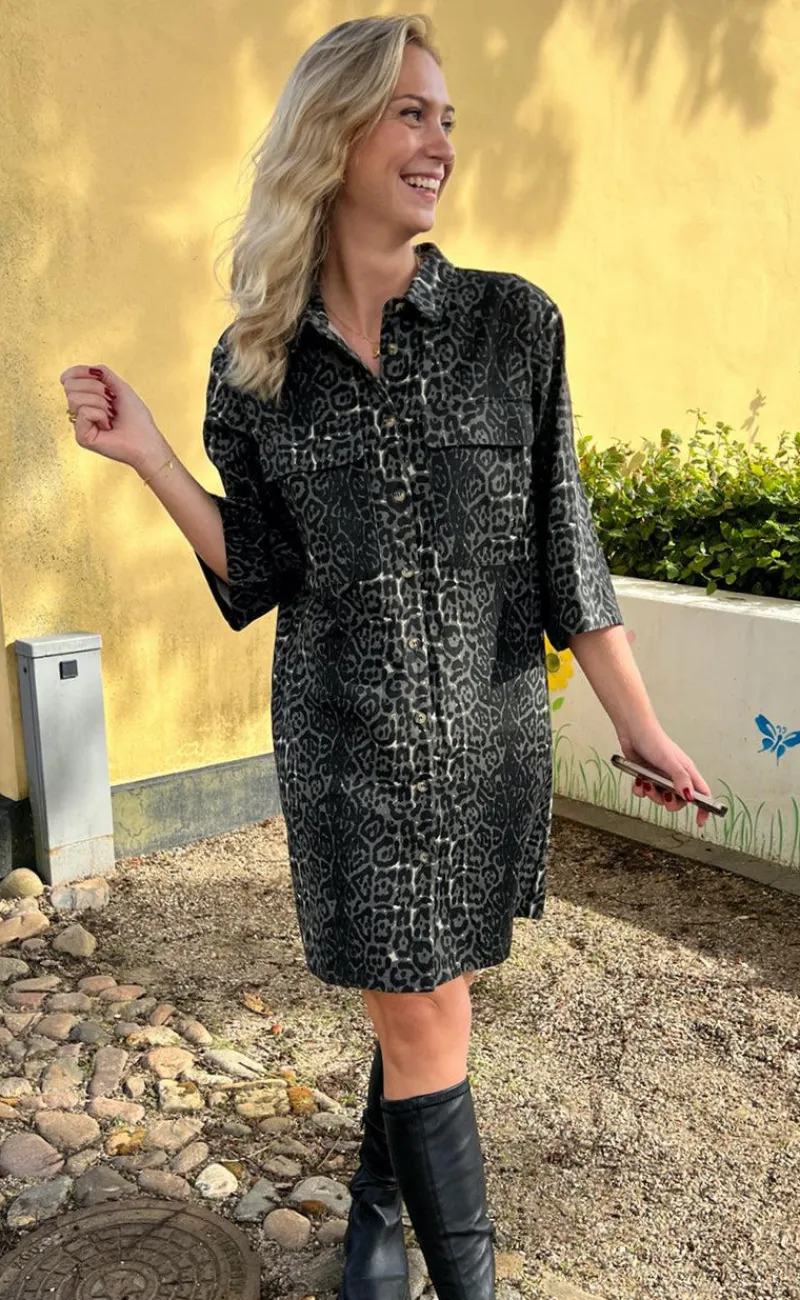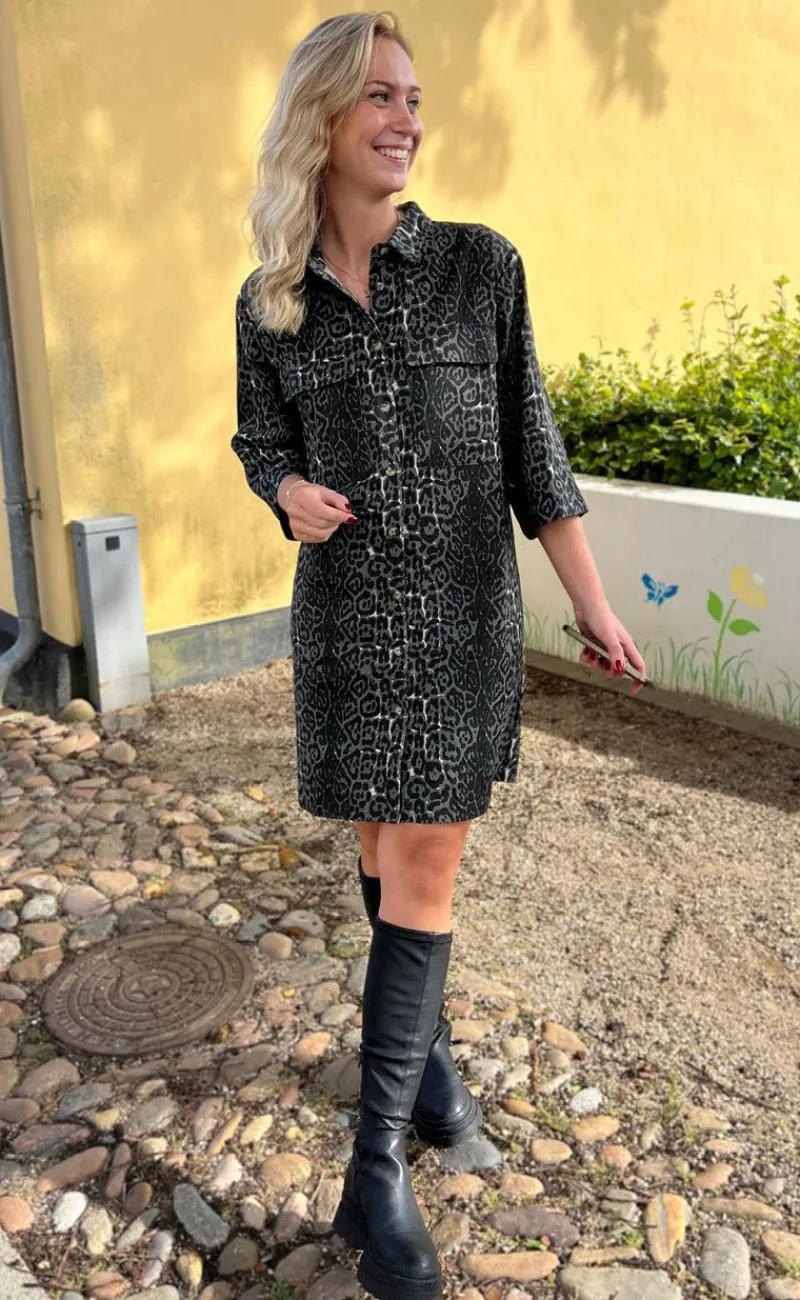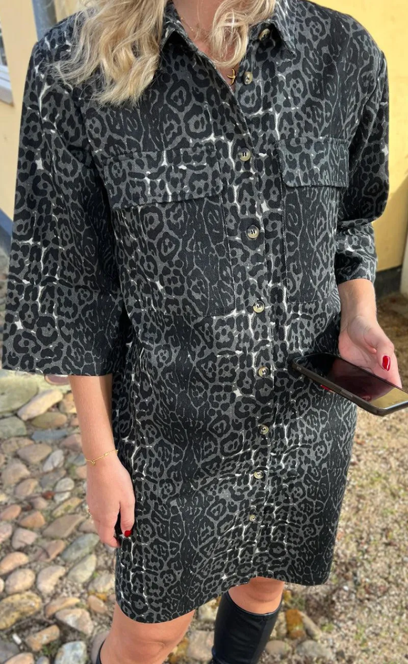 Smart kjole fra INA Copenhagen i grå leopard denim.