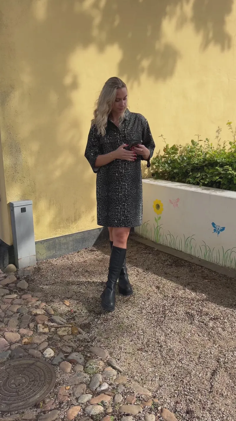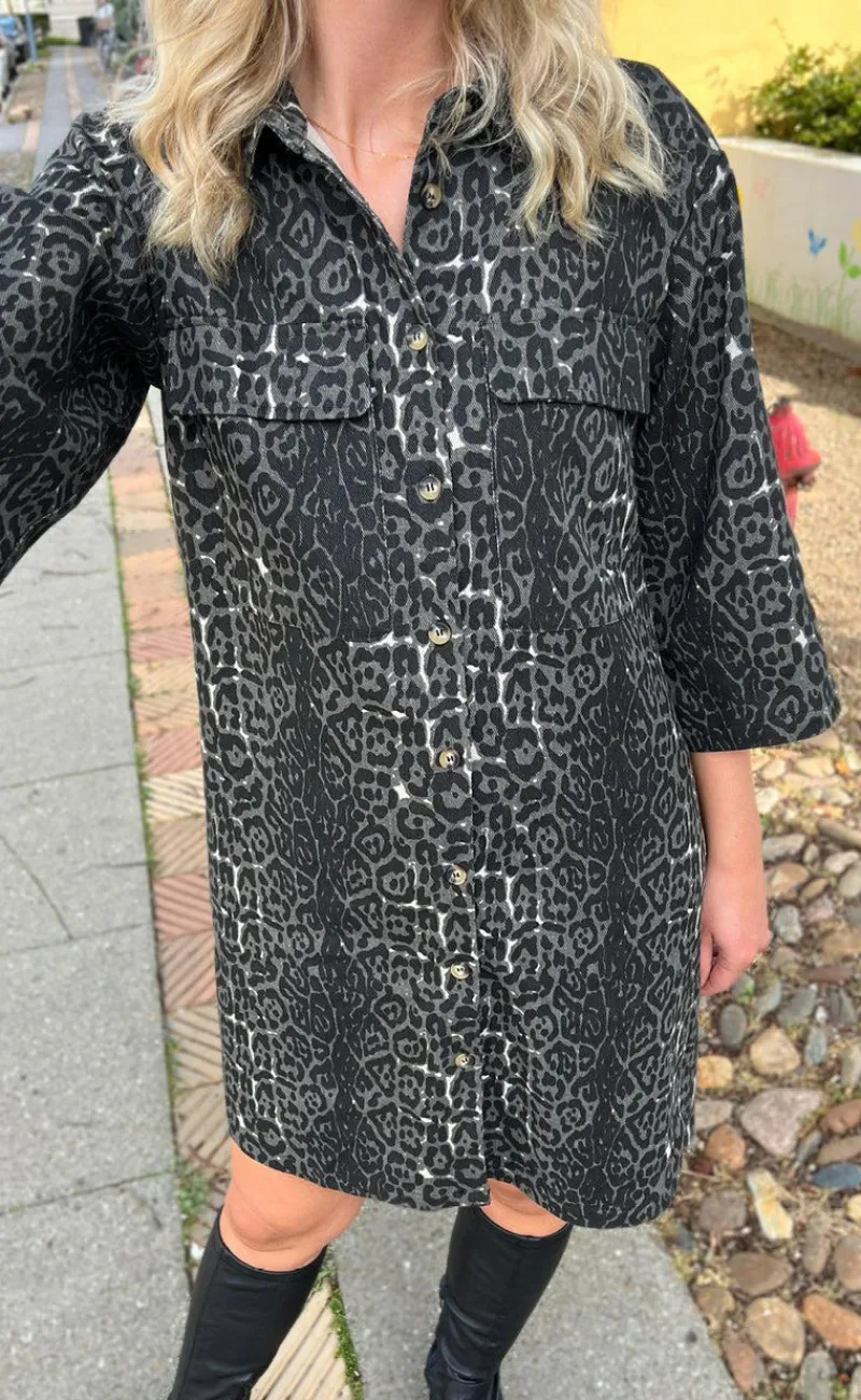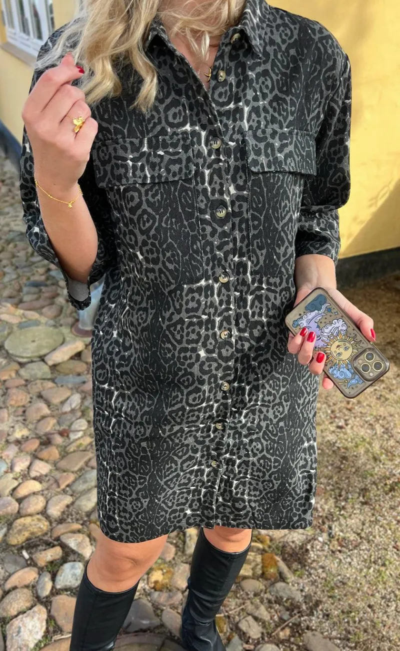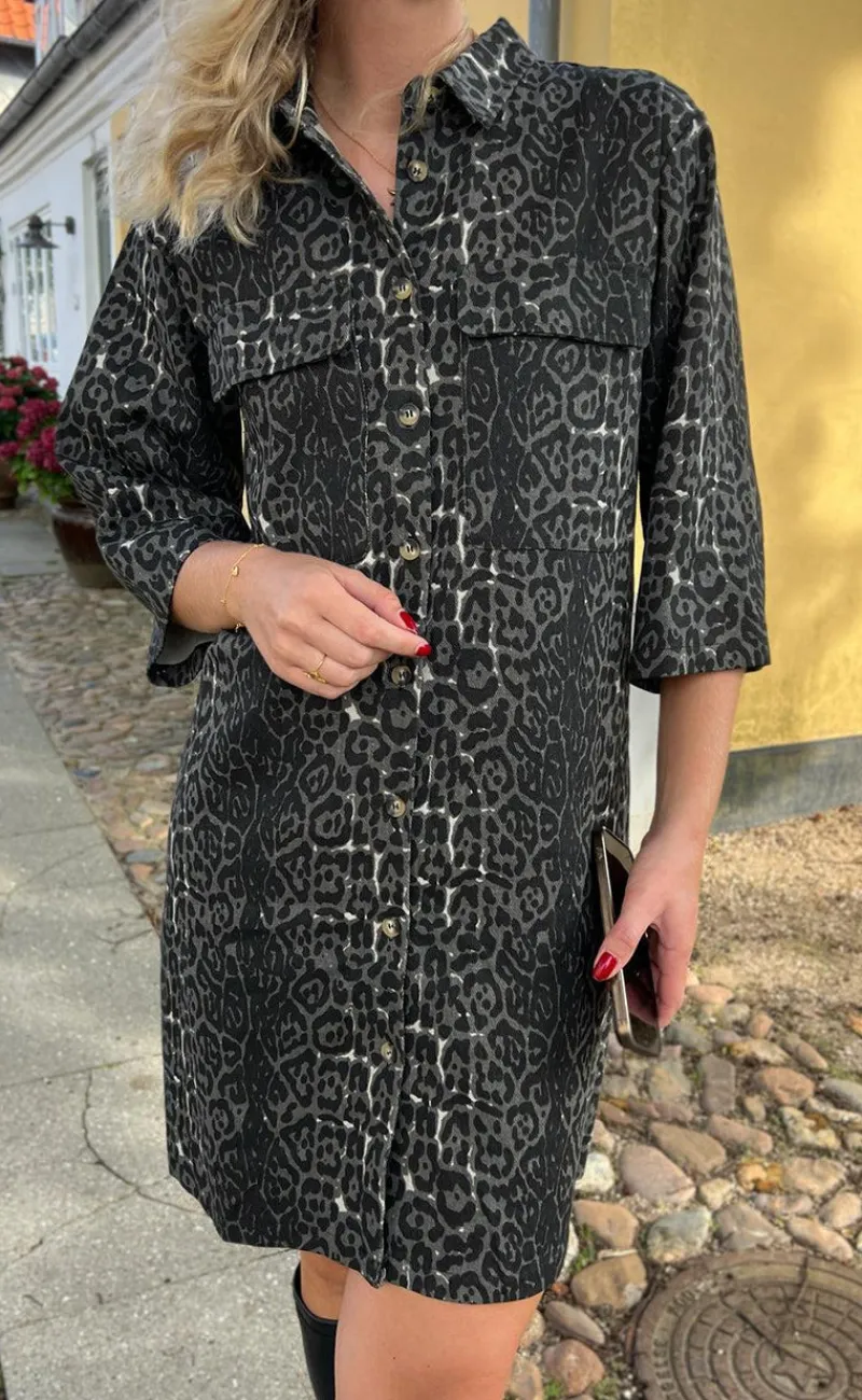 Smart kjole fra INA Copenhagen i grå leopard denim.