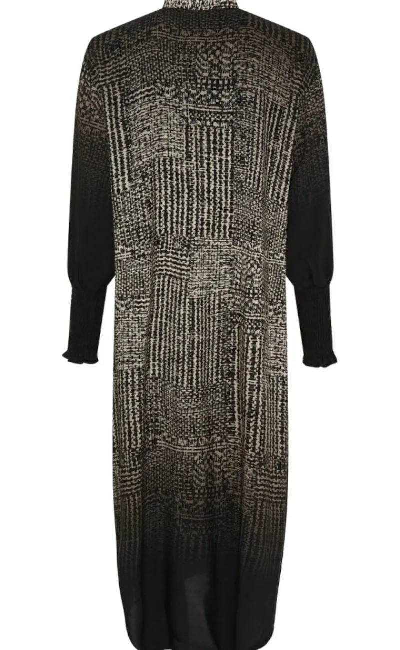 Kjolen har lange ærmer med stræk i samt en løs pasform.