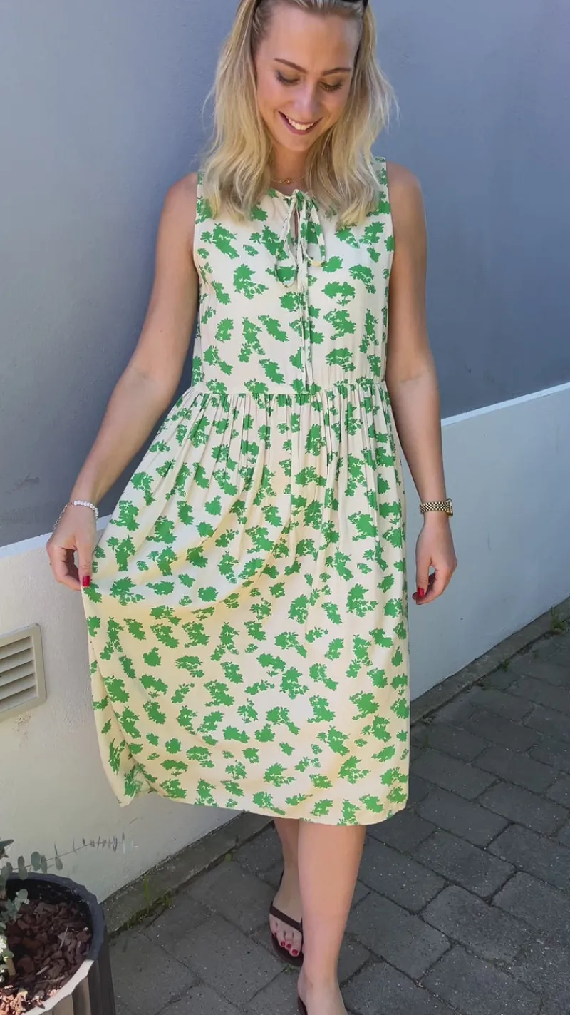 Fin kjole fra INA Copenhagen i hvid med grønne blomster.