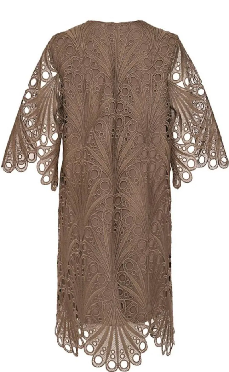 Fin og feminin kjole er brun.