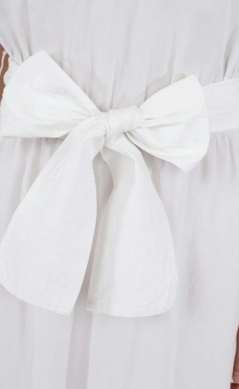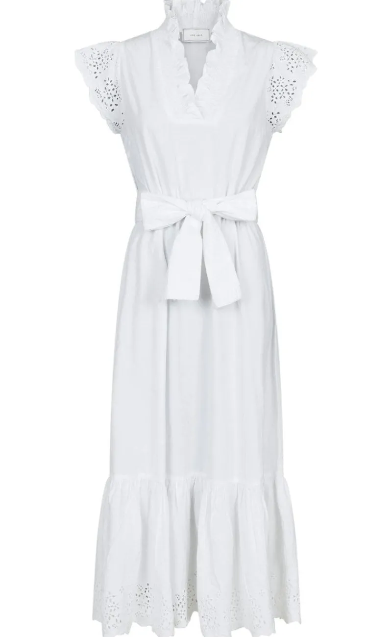 Kjolen har fine broderi anglaise detaljer, en v-hals samt en stor bindesløjfe i taljen.