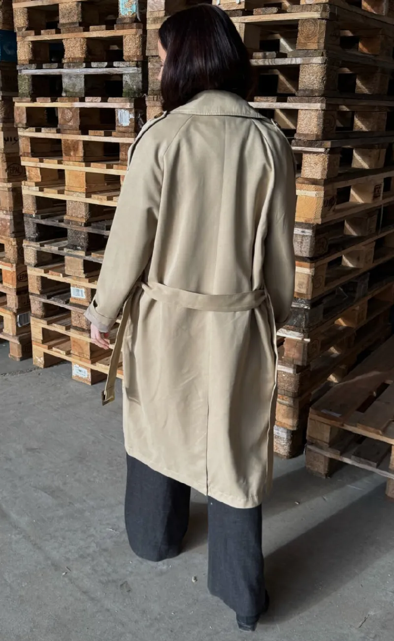 Lang trenchcoat fra Love & Divine i beige.