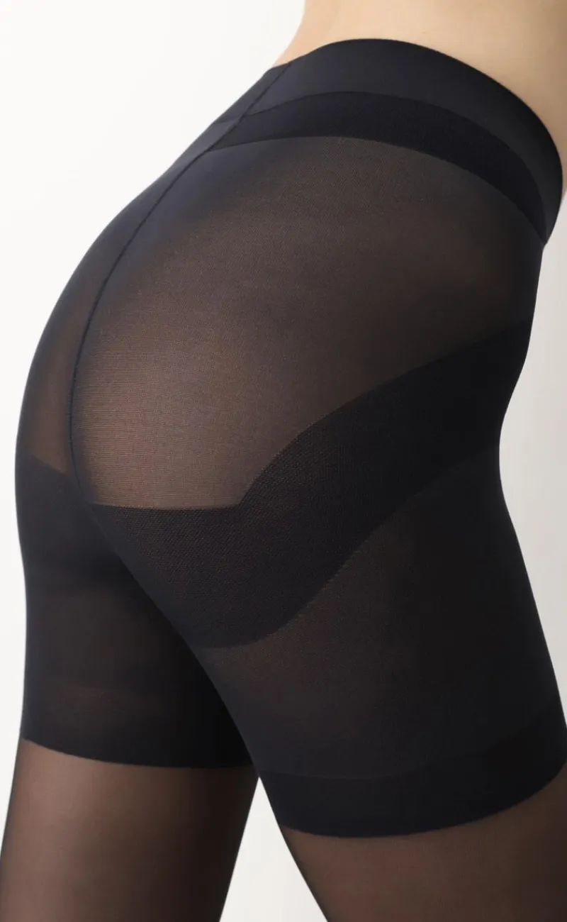 Strømpebukserne er i 40 denier og er fremstillet i et slidstærkt materiale med flade, håndsyede sømme, som sikrer en længere holdbarhed. Strømpebukserne har push-up effekt som løfter bagdelen samt har en shape-effekt til talje, hofter og lår.