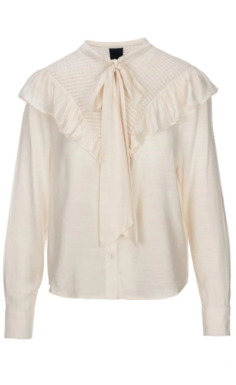 Skjorten har lange ærmer, bindedetalje fortil samt en behagelig pasform.