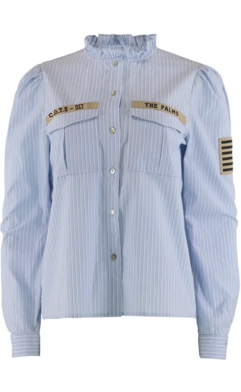Denne skjorte har en kinakrave samt en masse detajler, som er med til at give et militær look.
