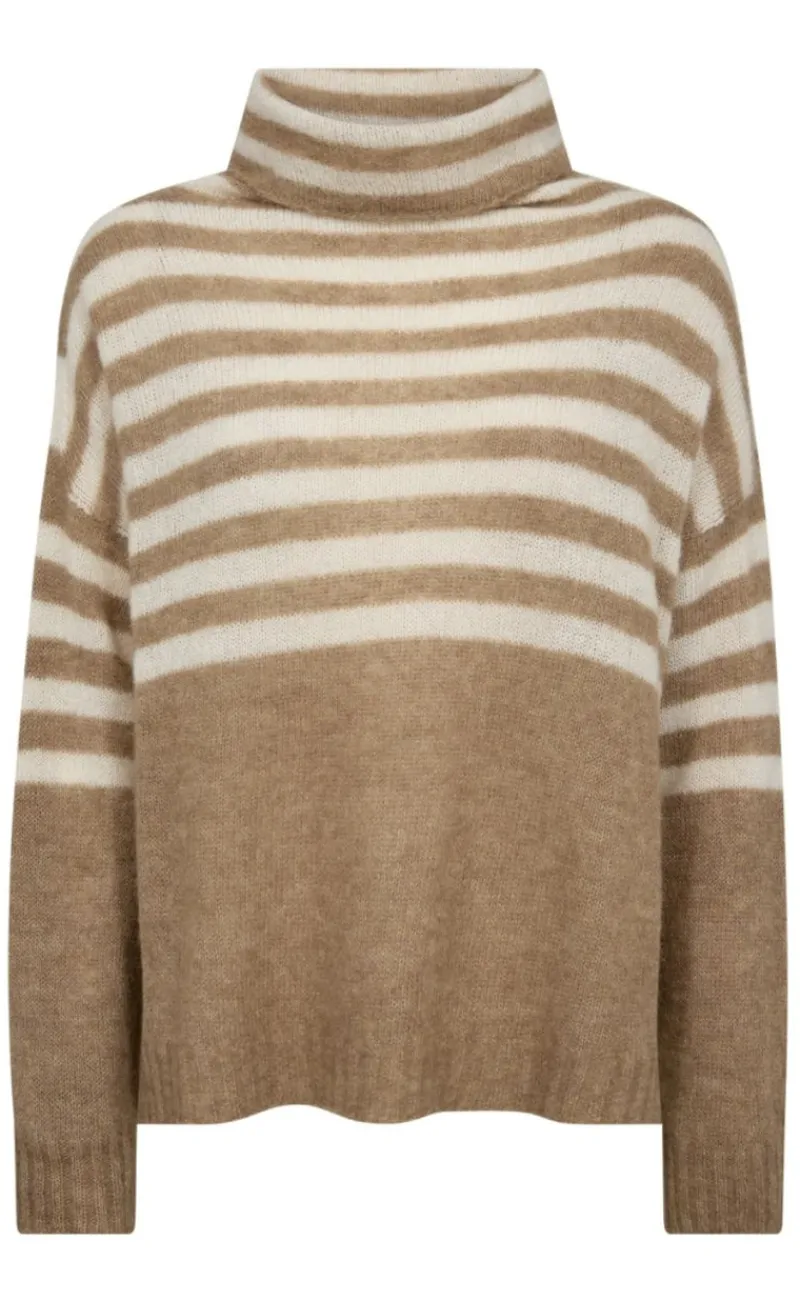 Ambrosiago Sweater med striber, høj hals og lange ærmer. Denne strik har et løst lækkert fit.
