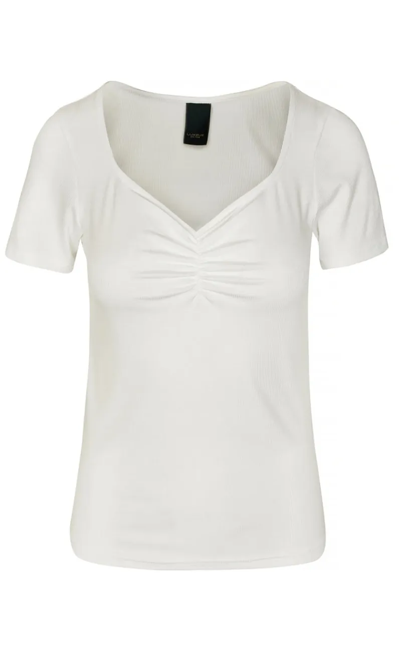 Sød t-shirt fra Luxzuz i hvid i en ribbet kvalitet.