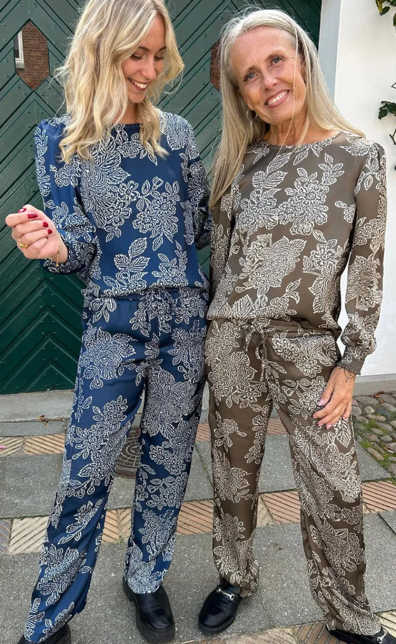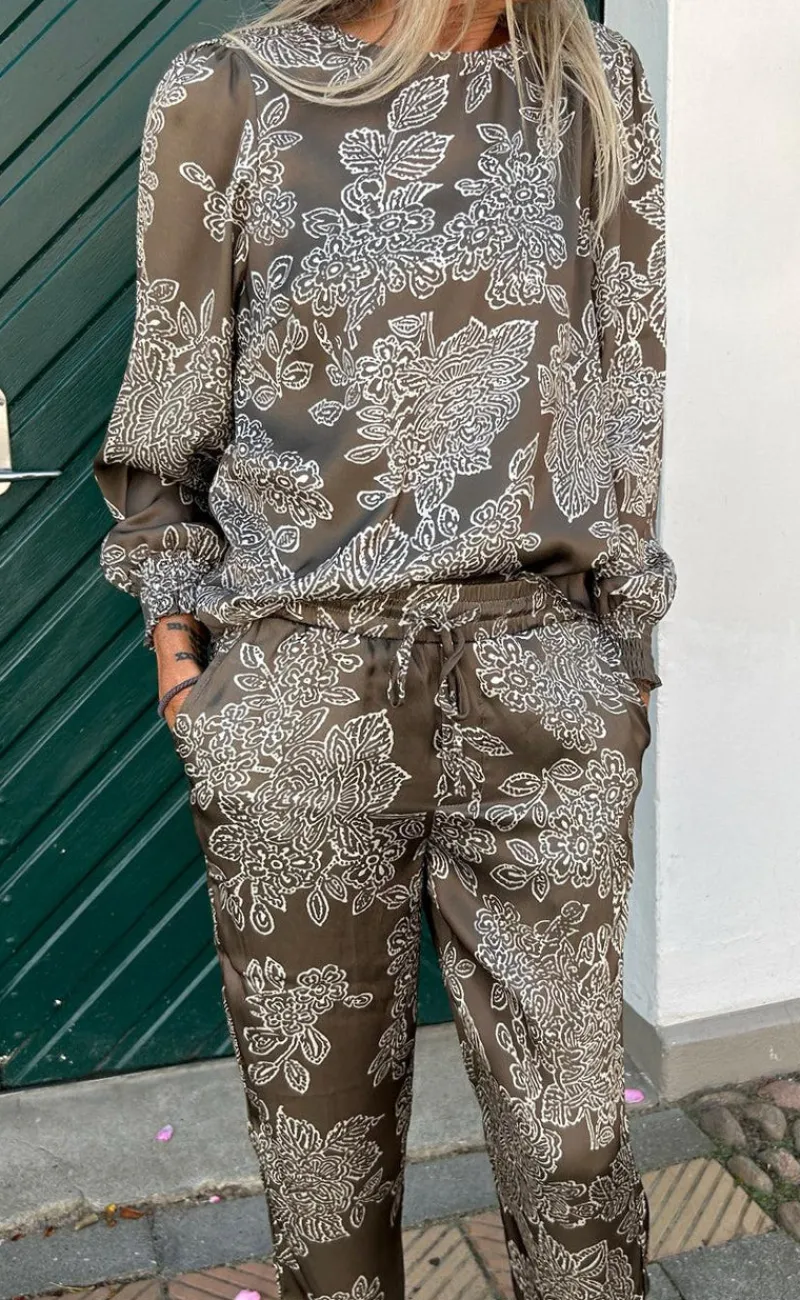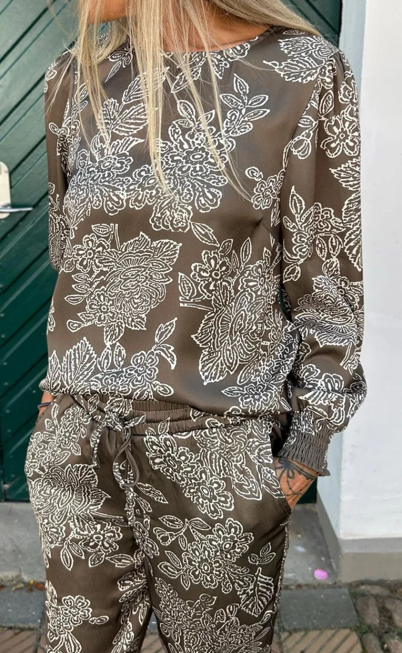Super smuk bluse fra INA Copenhagen i en brun nuance med et eksklusivt blomsterprint.