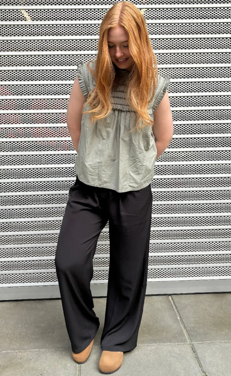 Sød og simpel bluse i grøn, med blonder.