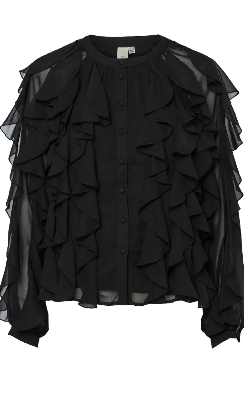 Yndig og feminin bluse fra YAS i sort med mange flotte detaljer.