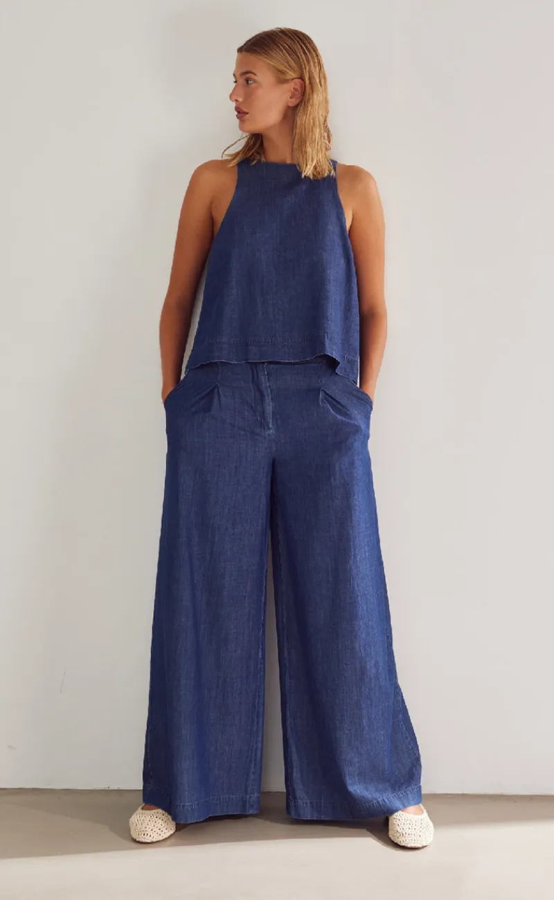 Flotte busker fra Noella i blå, med et wide leg fit.