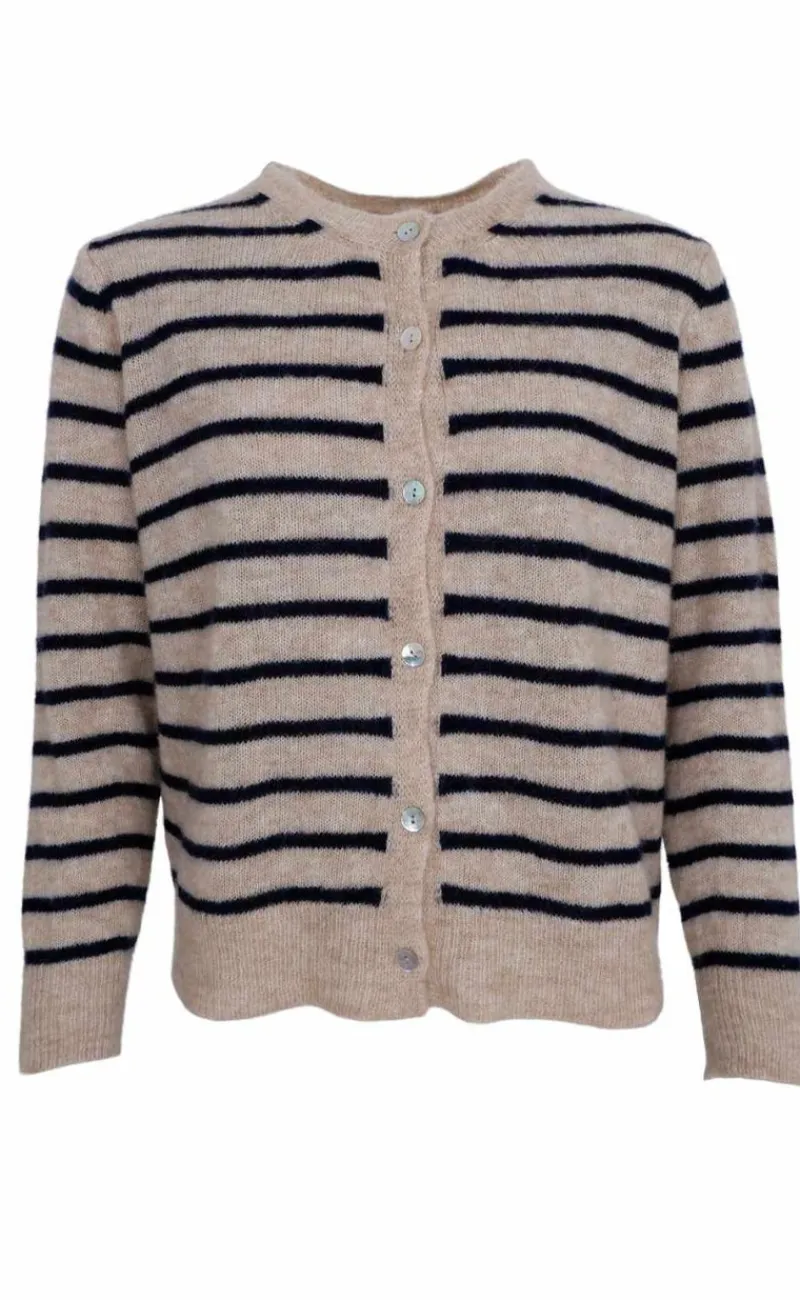 Dejlig og pæn cardigan med beige og blå striber.