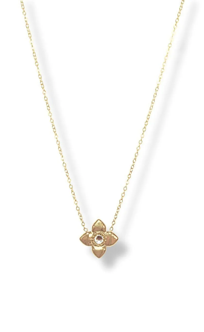 Fin halskæde fra Smykkeli Copenhagen i guld med et vedhæng formet som en blomst med zirconia sten.