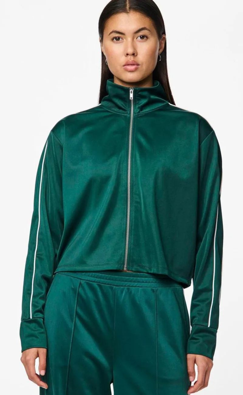 Track jakke fra Pieces i en flot grøn farve. Grace jakken lukkes med lynlås og har et behageligt fit.