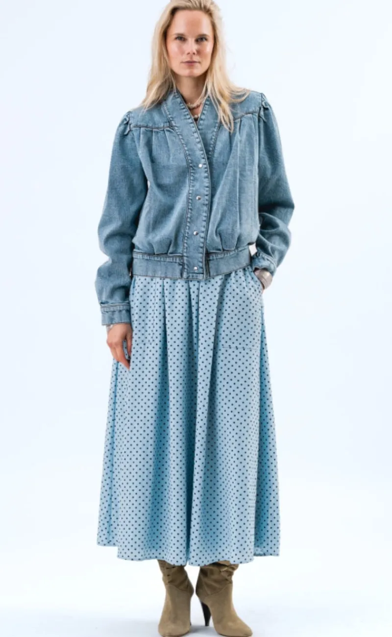 Lækker denim jakke fra Lollys laundry i en blå farve.
