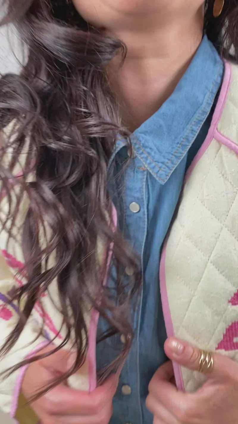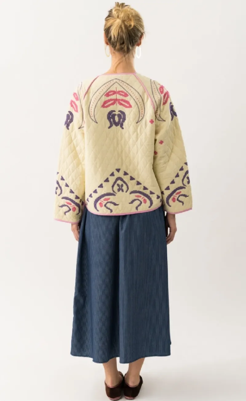 Dejlig sommer jakke fra Lollys Laundry i beige, med et flot print.