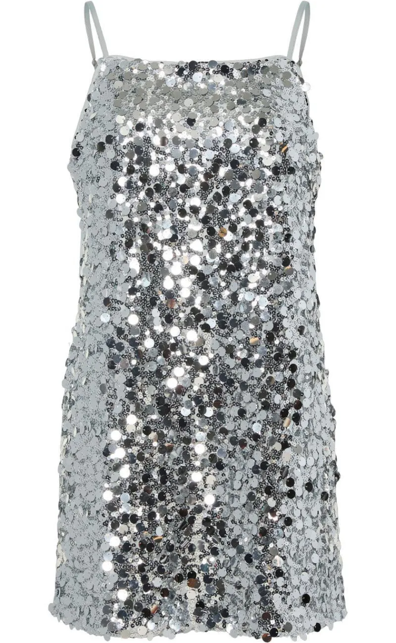 Festlig kjole fra Pieces i sølv dækket af smukke palietter.