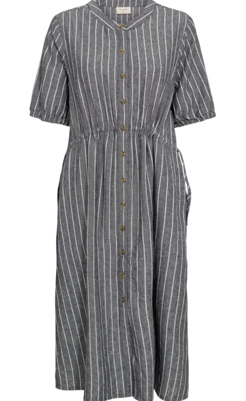 Fin kjole fra Freequent i grå med striber.