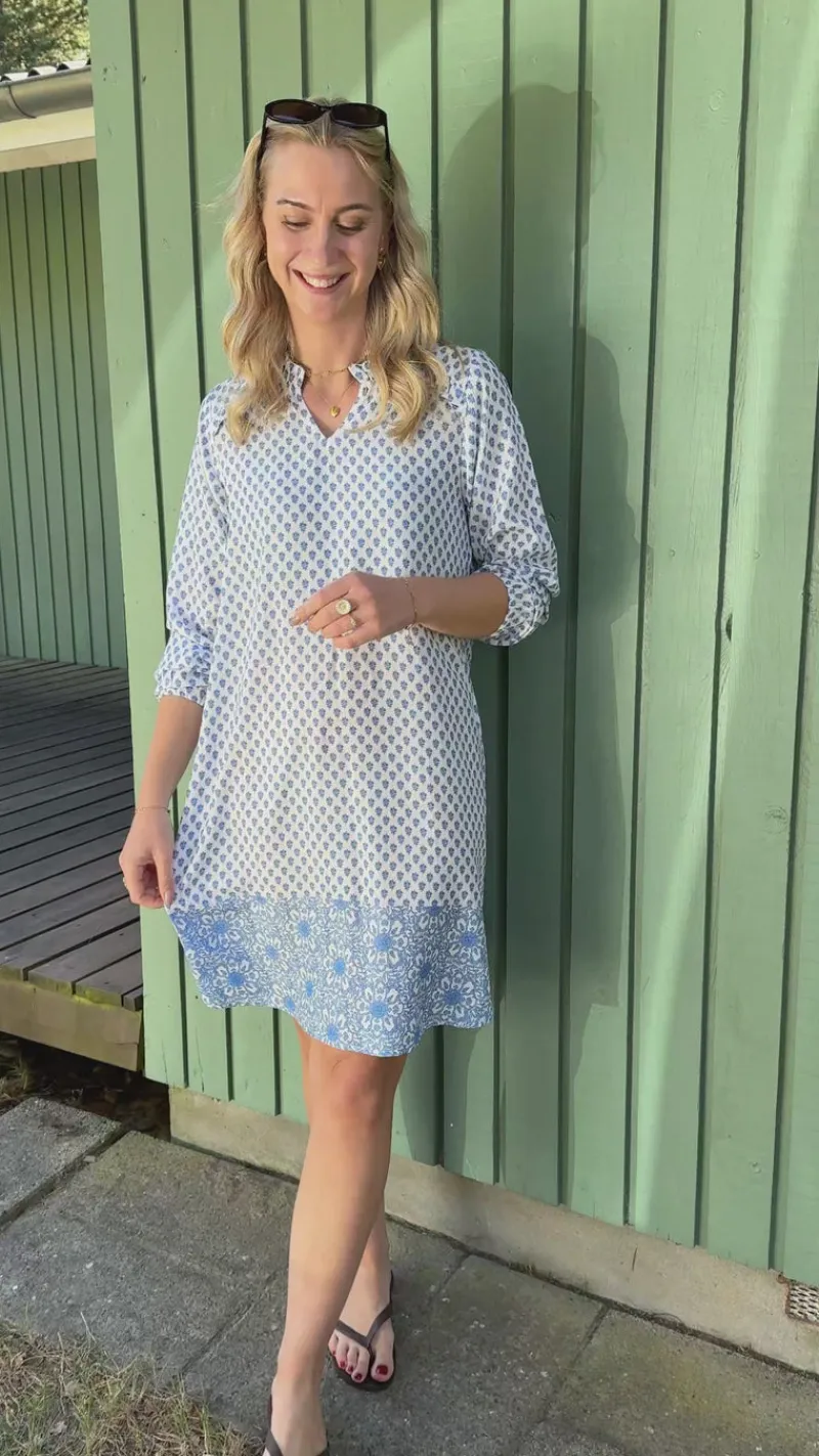 Flot kjole fra Say INA Copenhagen med det flotteste print i blå nuancer.