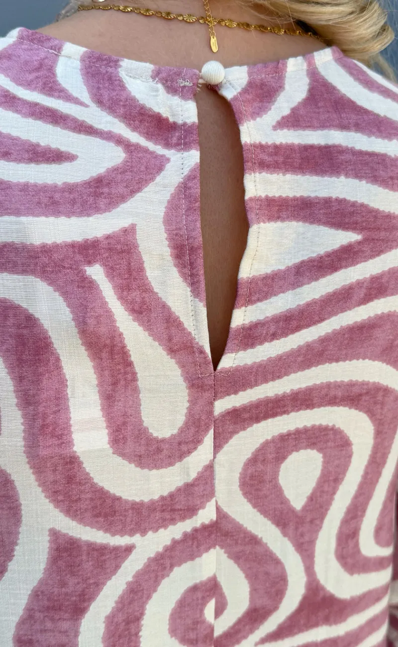 Den smukkeste kjole fra INA Copenhagen med print i en rosa nuance.