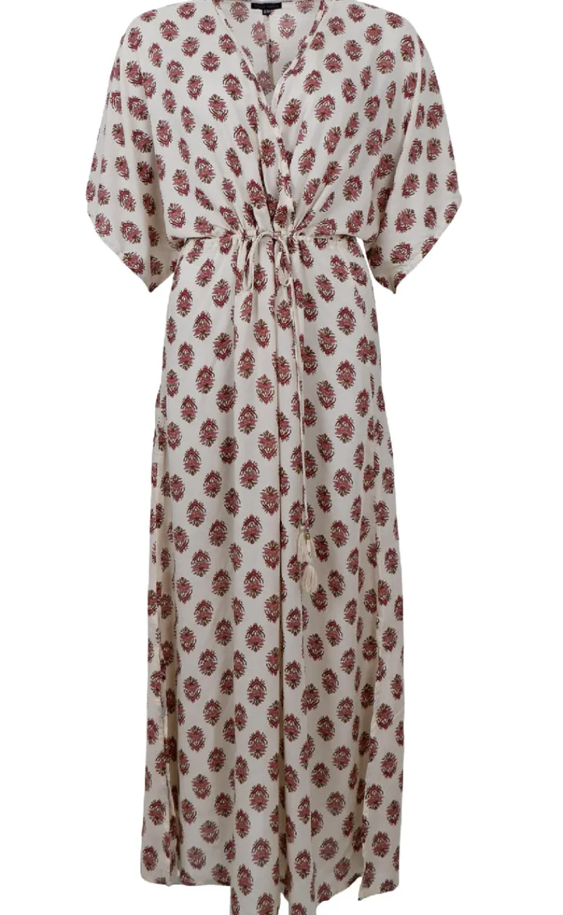 Maxi kaftan kjole fra Black Colour i et rødt print.
