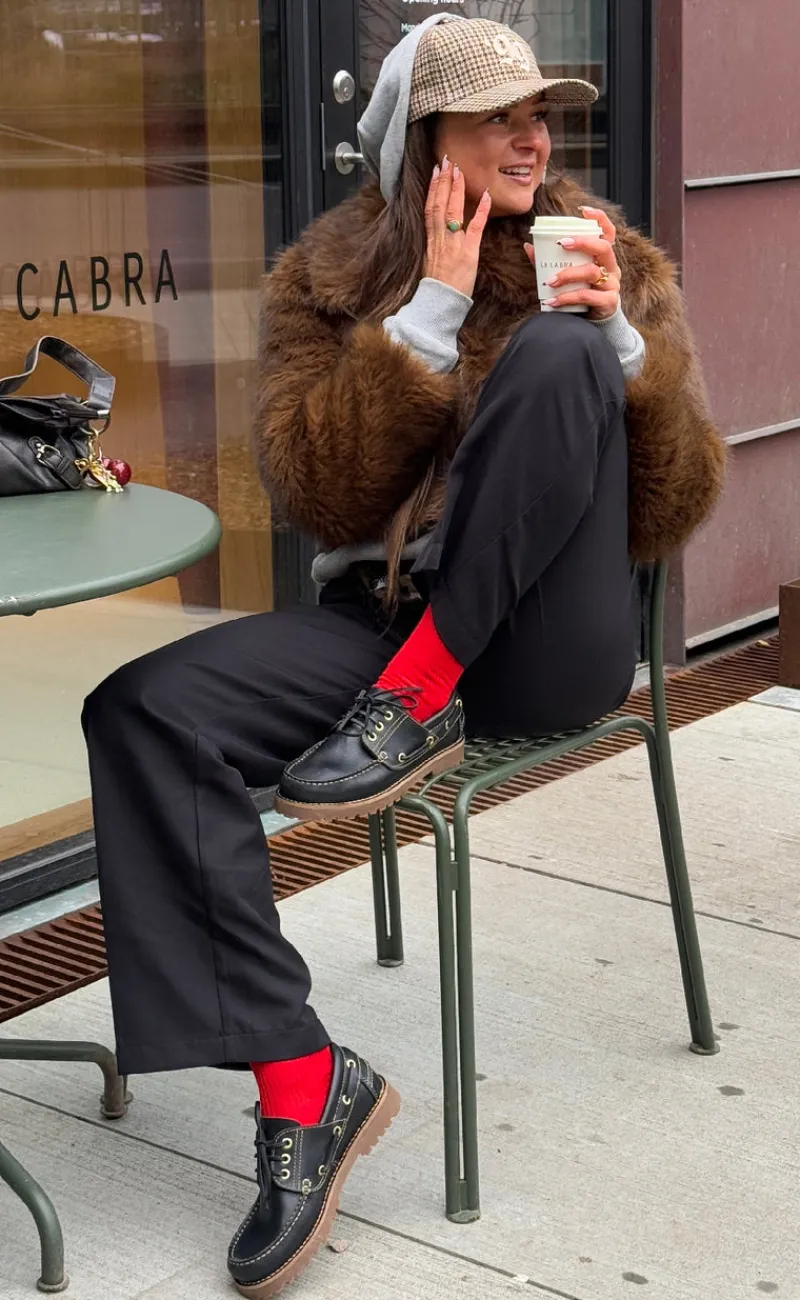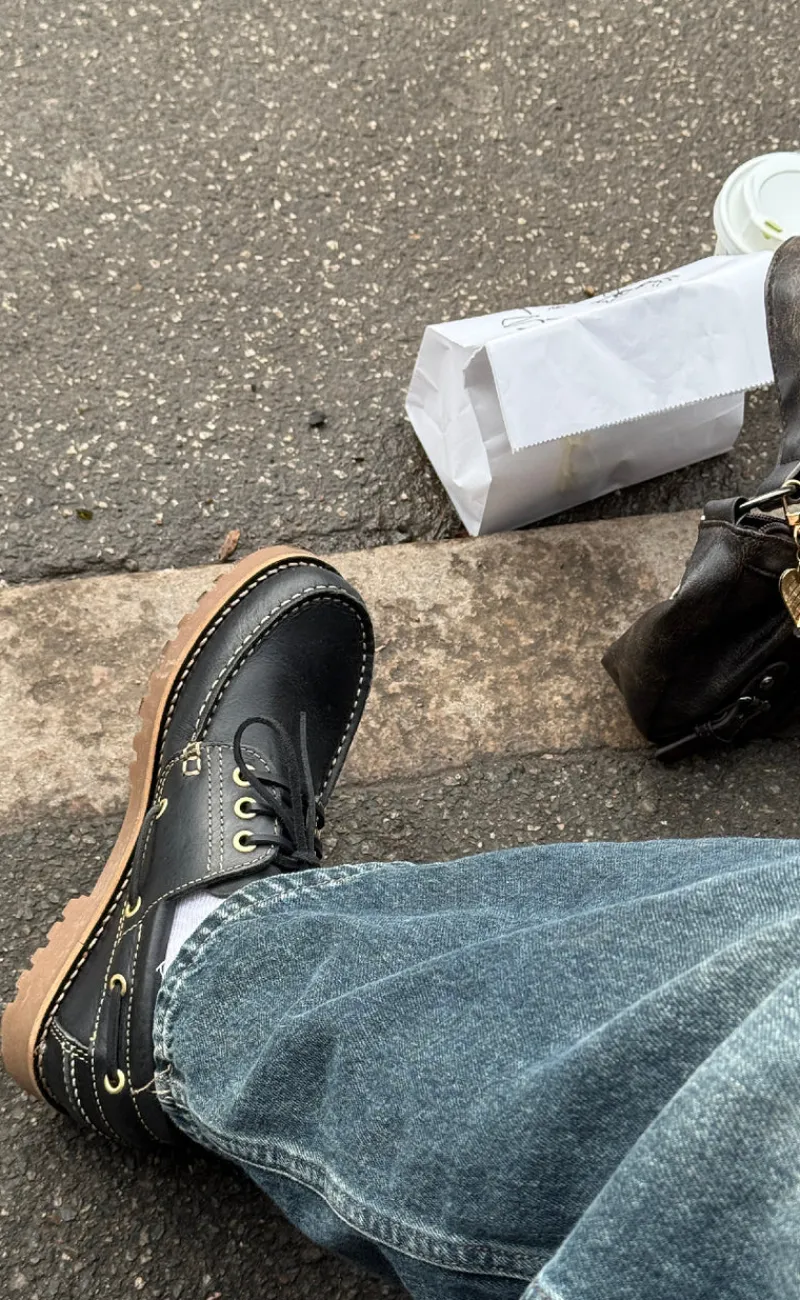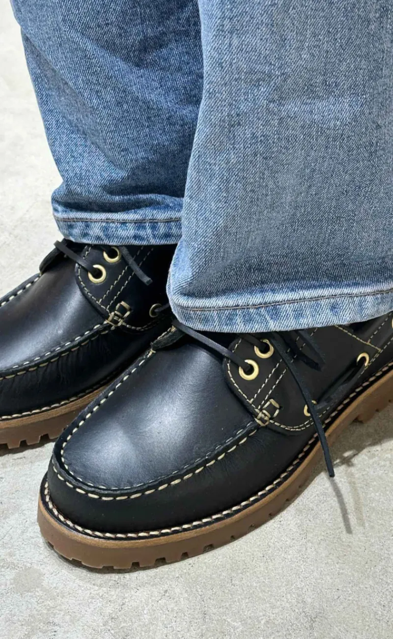 Moderne loafers fra Phenumb i sort, med fede kontrast syninger.