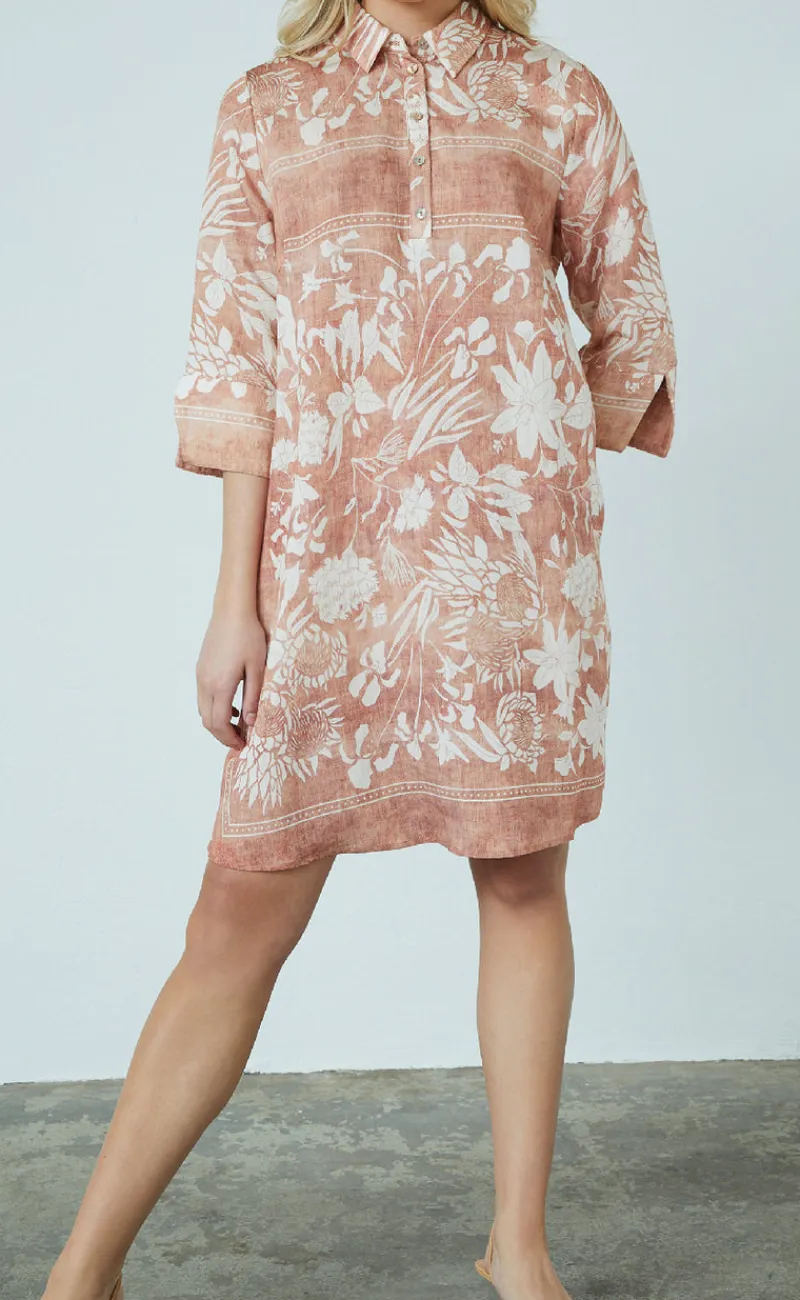 Kjolen har en kort knaplukning og 3/4 lange ærmer.