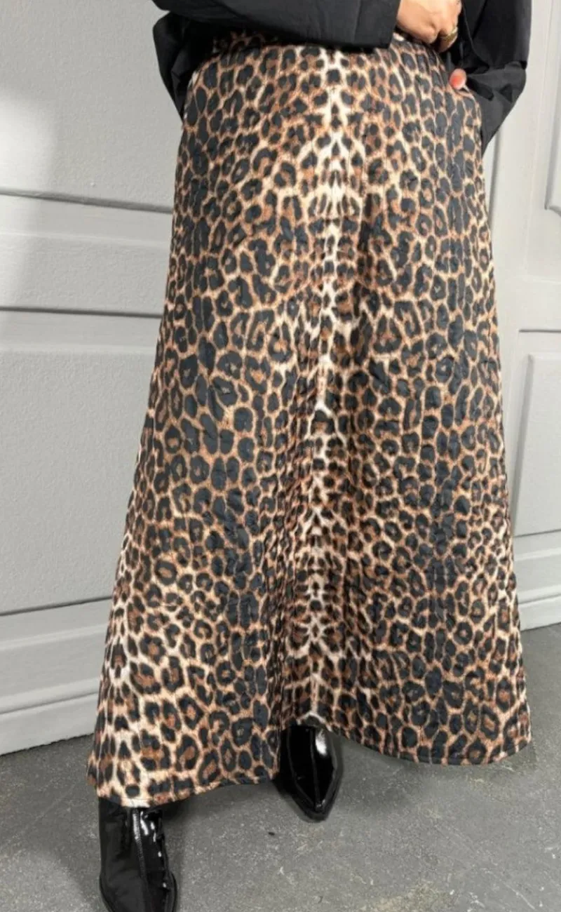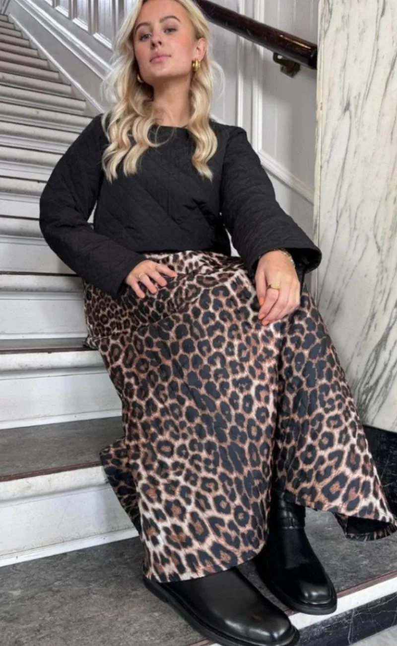 Den fineste nederdel vatteret i leopardprint fra Stories From The Atelier. Nederdelen lukkes bagpå med lynlås og har fast linning.