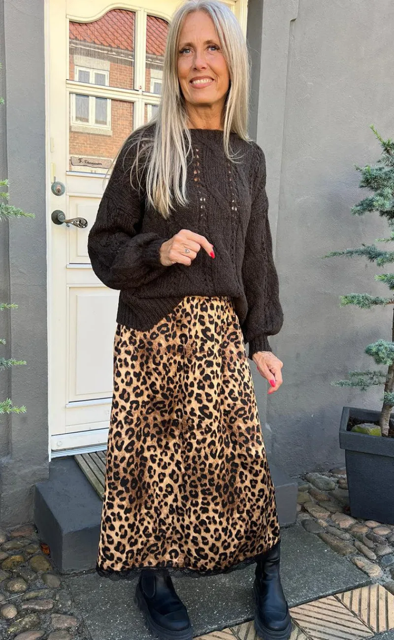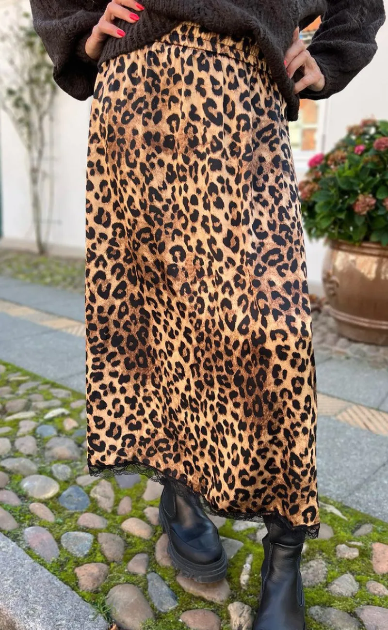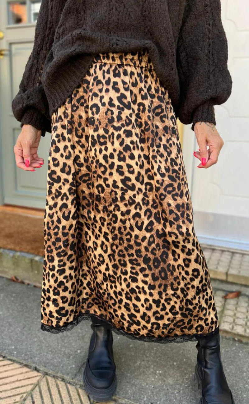 Fin nederdel fra INA Copenhagen i med leopard print og den fineste blonde-kant i bunden.