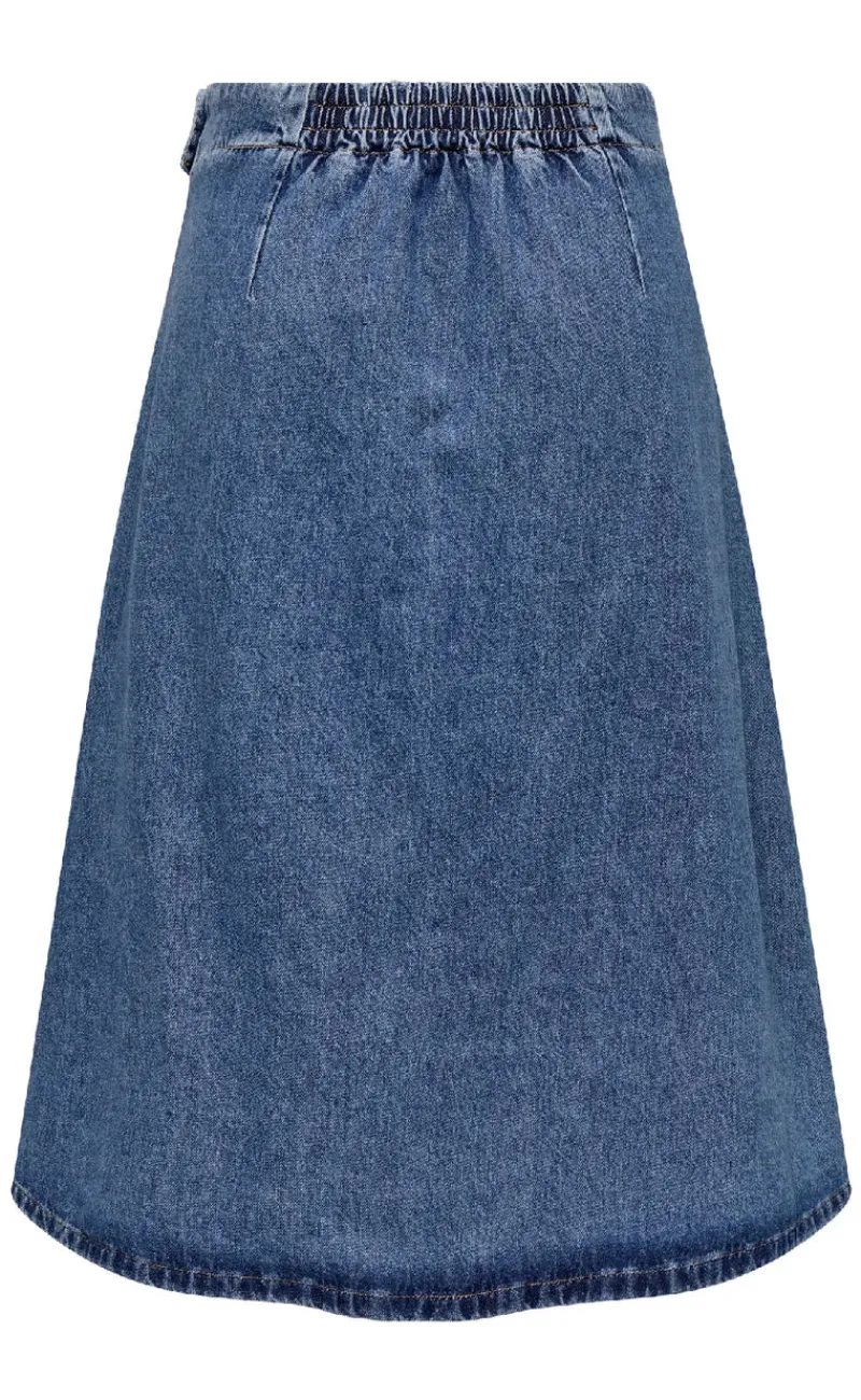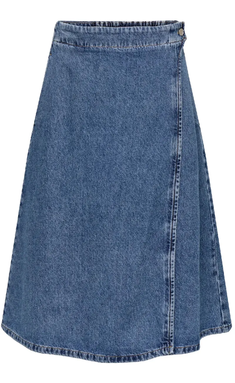 Wrap nederdel fra ONLY i en mørkeblå denim kvalitet.