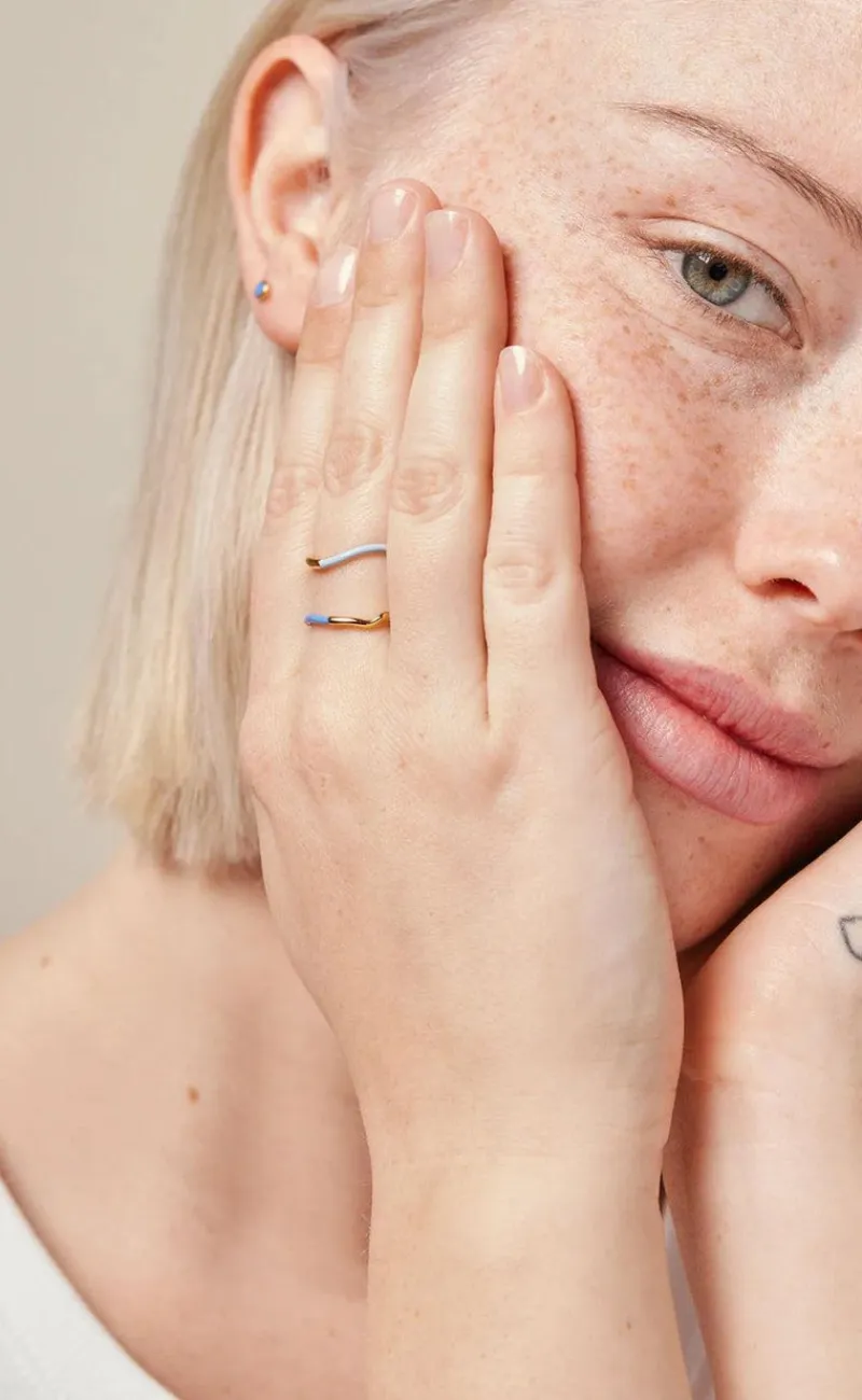 Smal og elegant ring fra Enamel Copenhagen, I blå og guld.