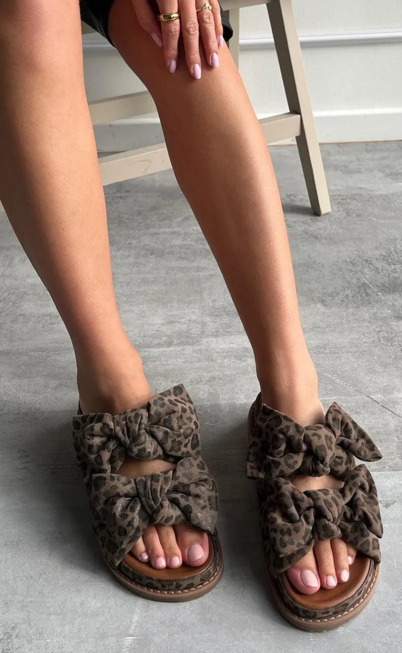 Disse sandaler kombinerer komfort med et stilrent design, der passer til de varme sommerdage. De har to store sløjfer på toppen.