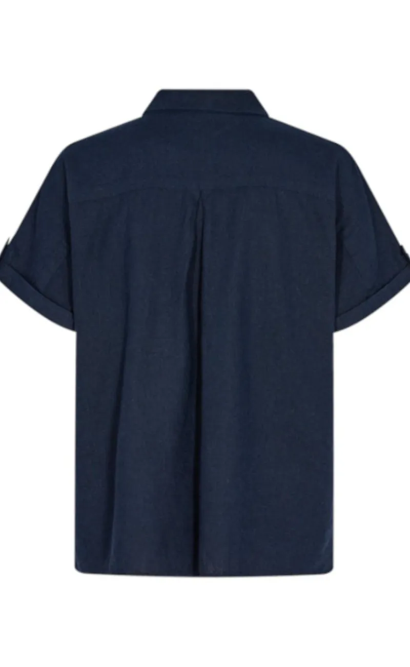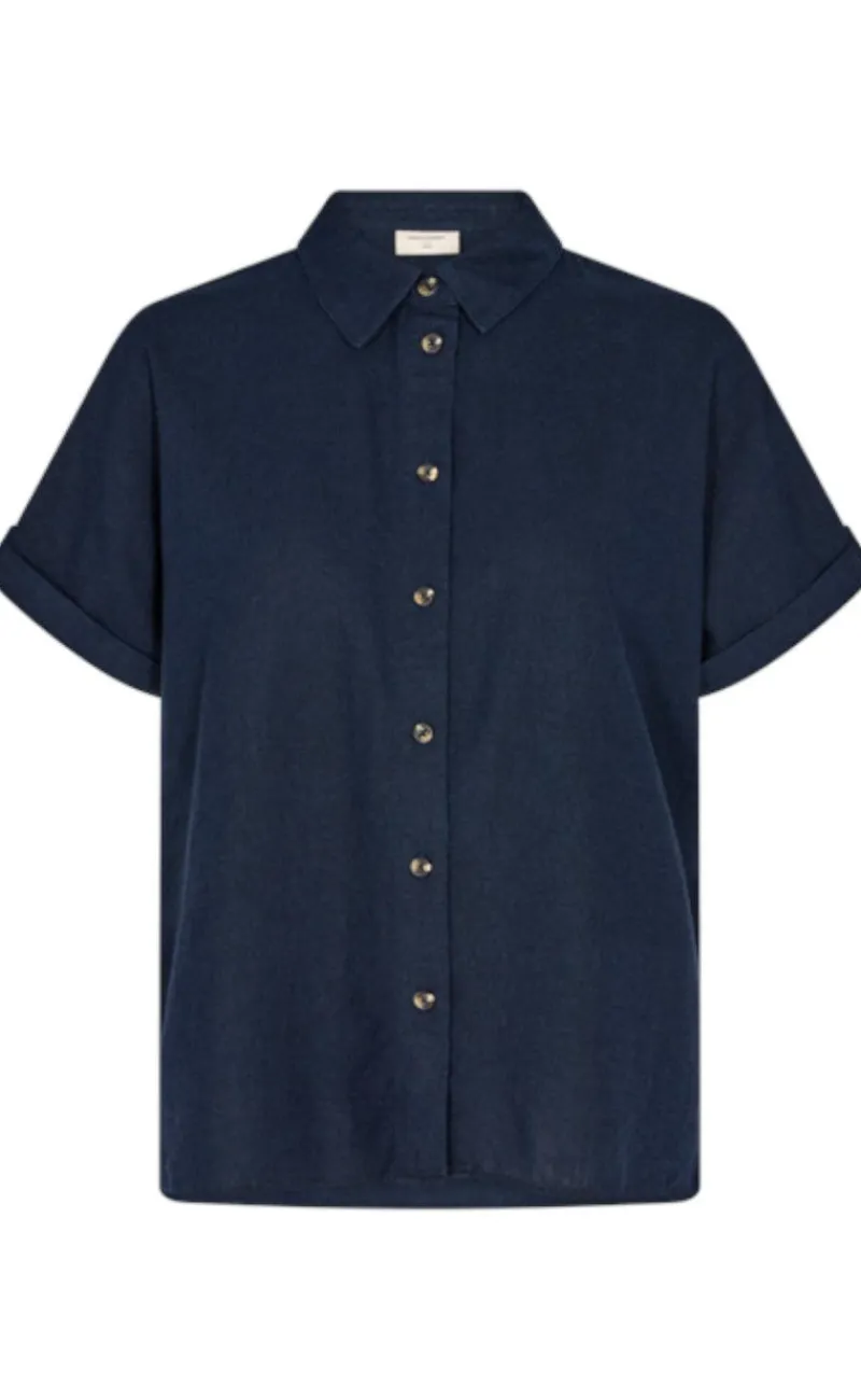 Moderne hør-skjorte fra Freequent i navy blå.