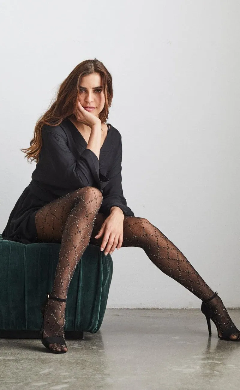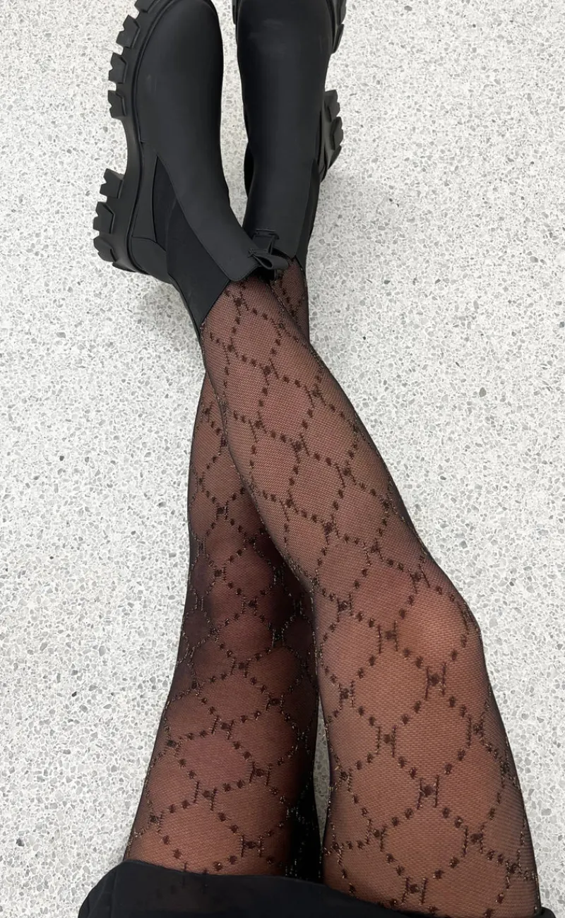 Lækre strømpebukser fra Hype The Detail i sort med guldglimmertråd i H-mønsteret.