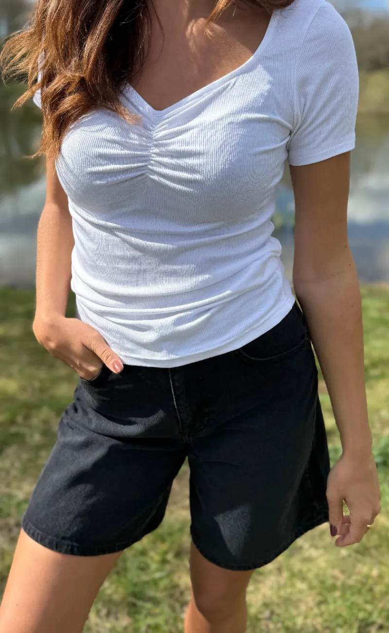 Sød t-shirt fra Luxzuz i hvid i en ribbet kvalitet.