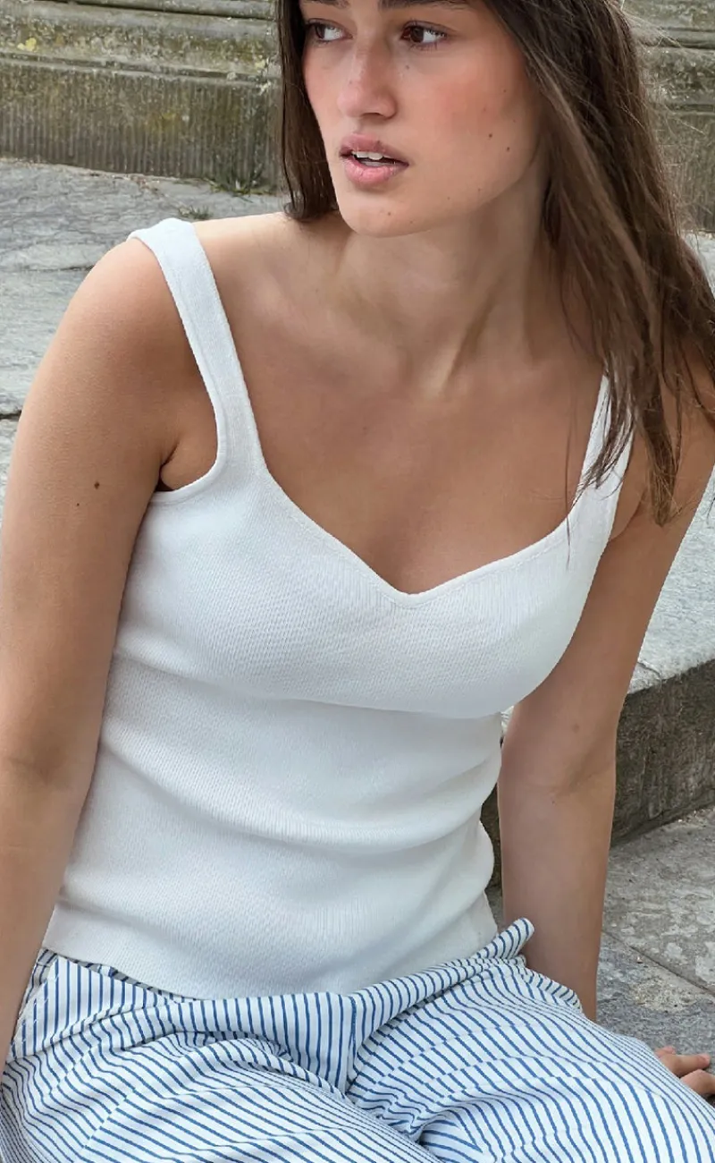 Cool strik top fra Neo Noir i hvid, med et ribbet udseende.