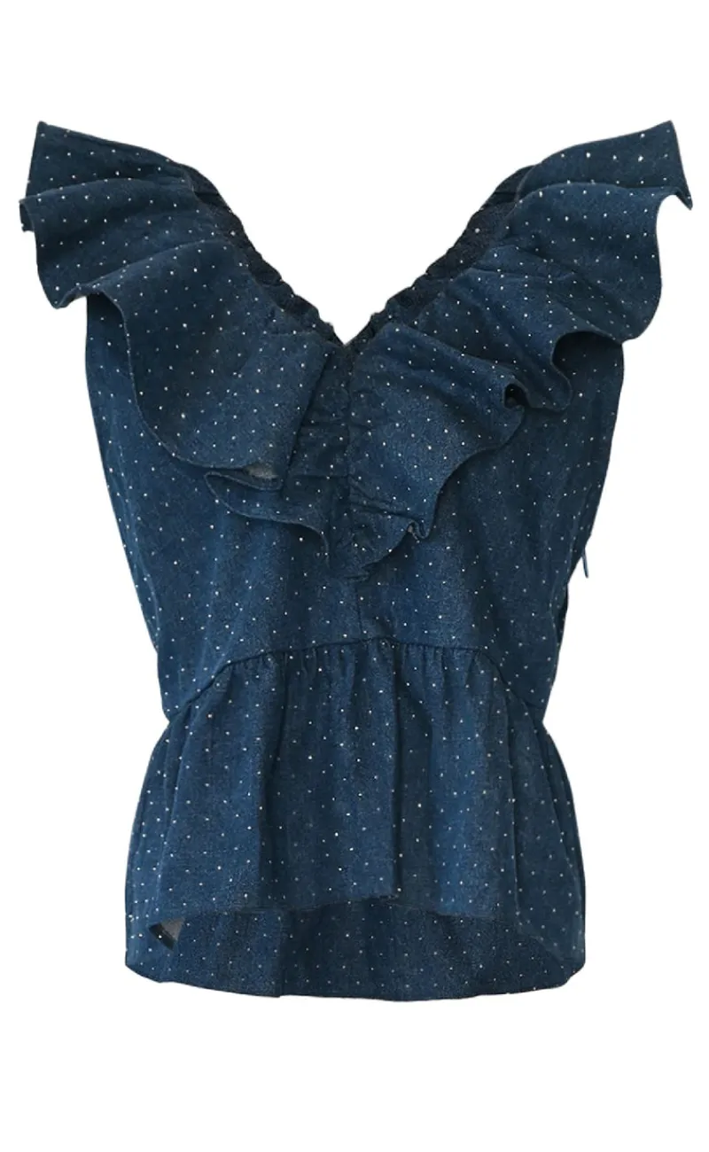 Prikket top fra Noella i blå og hvid.
