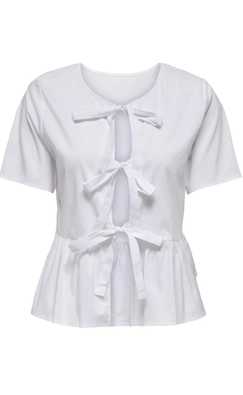 Toppen har fine sløjfe detaljer og korte ærmer.