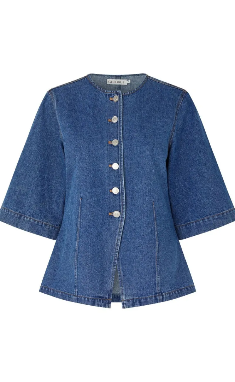 Smuk denim bluse fra Global Funk med knapper langs fronten og et feminint snit.