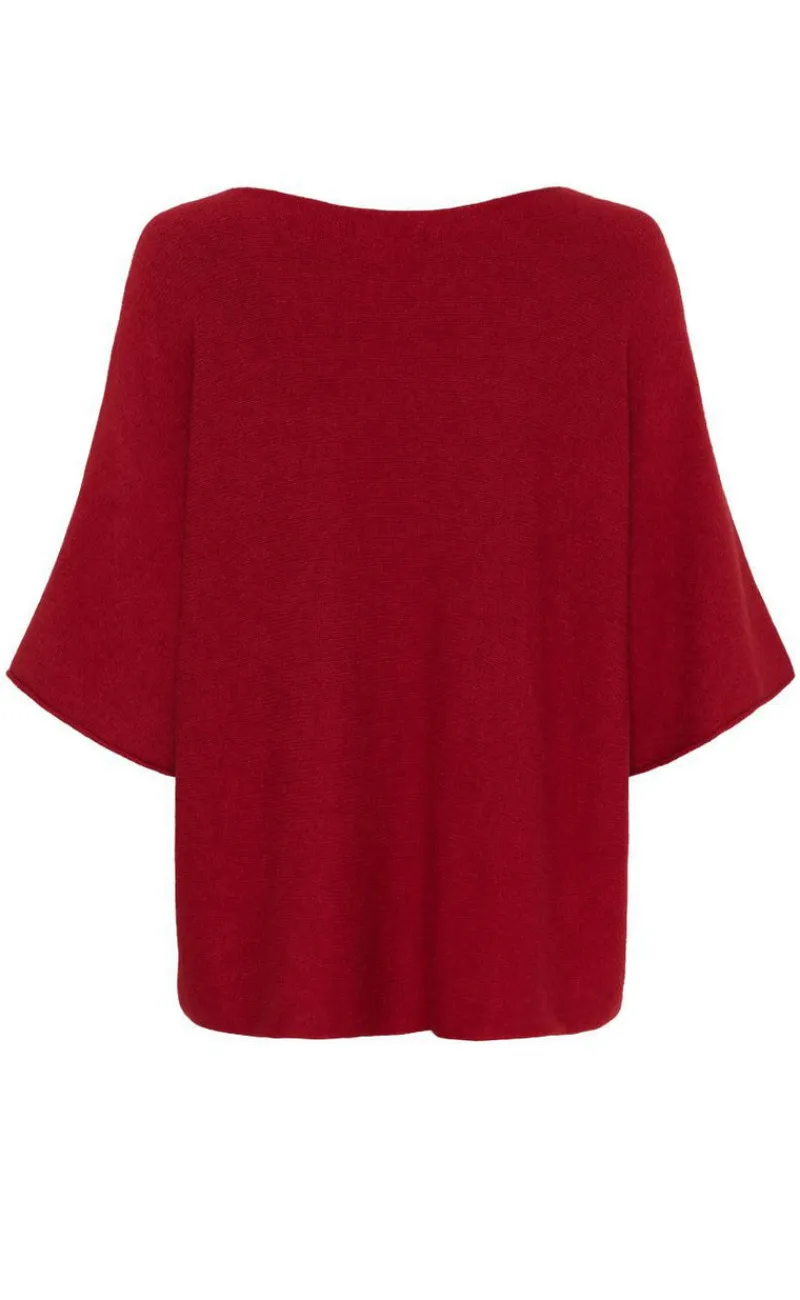 Blusen har brede ærmer, en rund hals samt en løs pasform.