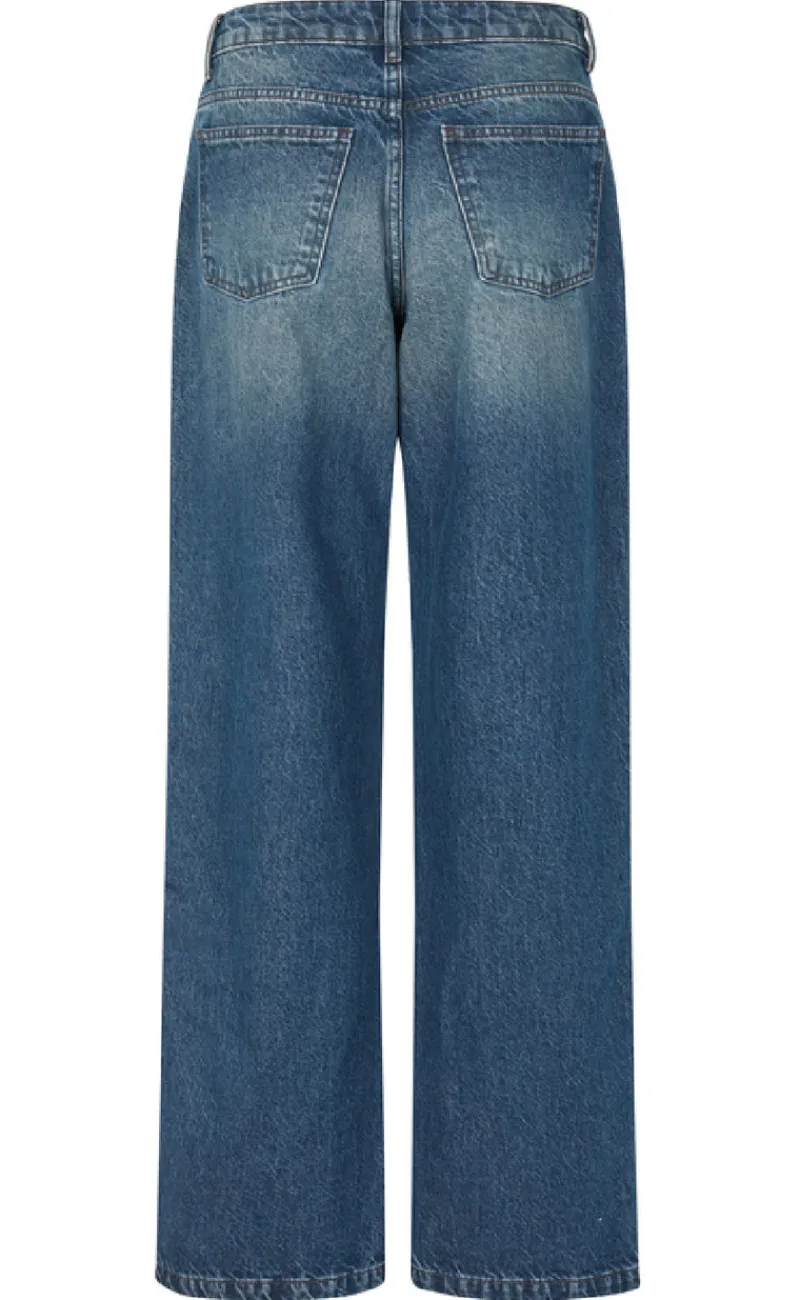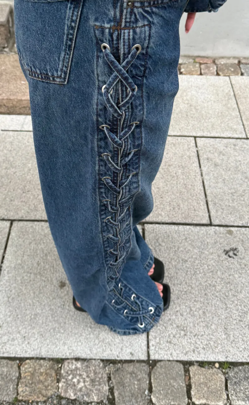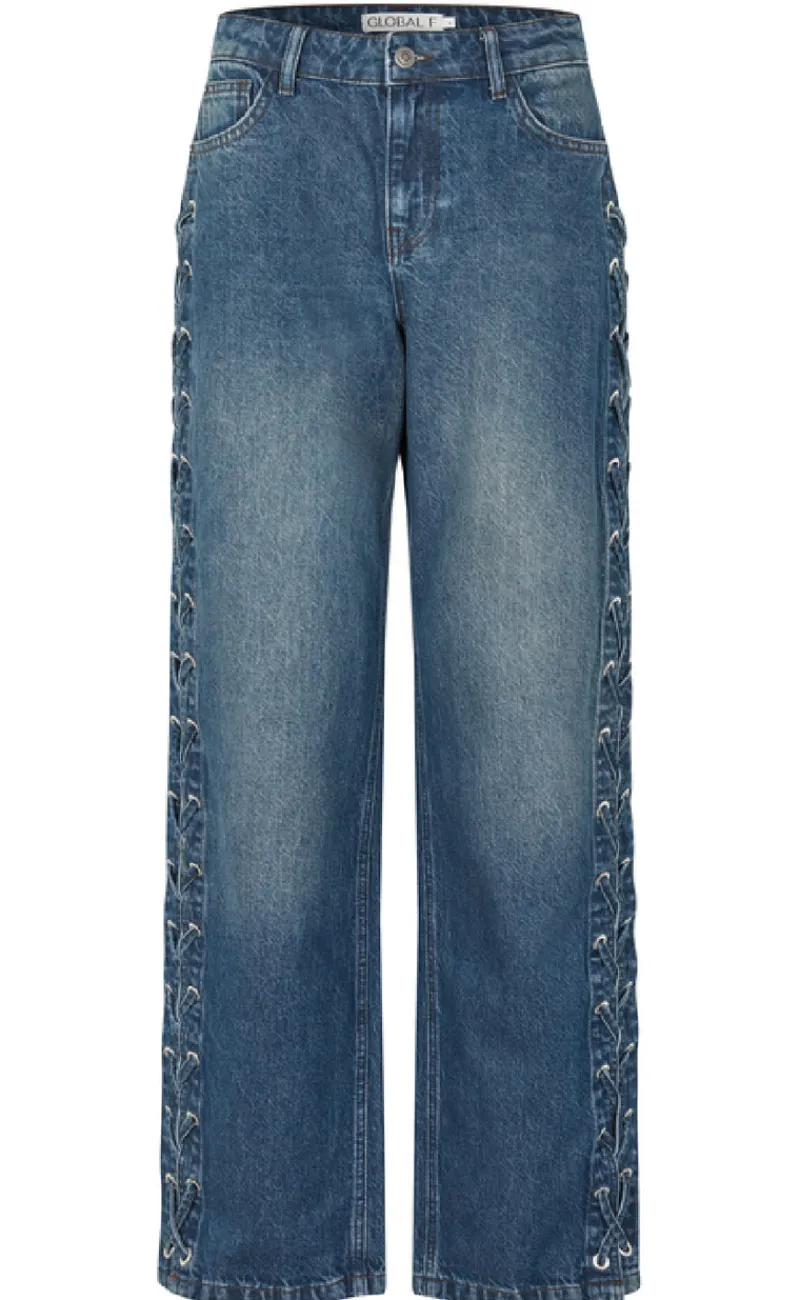 Rå og cool jeans fra Global Funk i en blå farve, med en unik detalje på ydersiden.