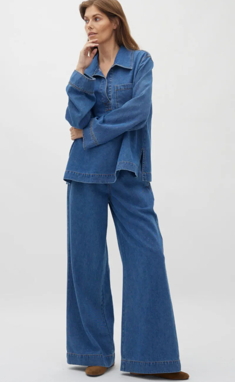 Fede bukser fra Global Funk i blå, med elastik i taljen og vidde i benene.